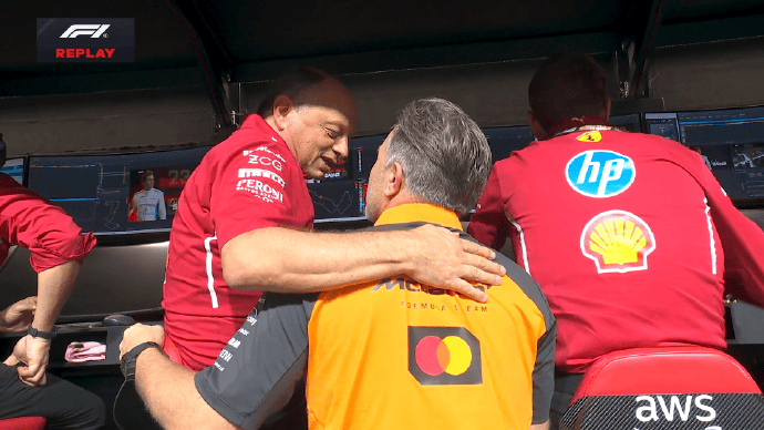 瓦塞尔和扎克-布朗在排位赛前交流;