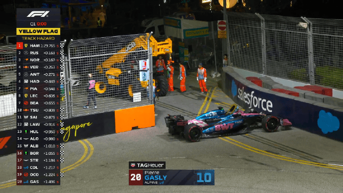 回放显示Q1最后阶段加斯利遭遇赛车故障;