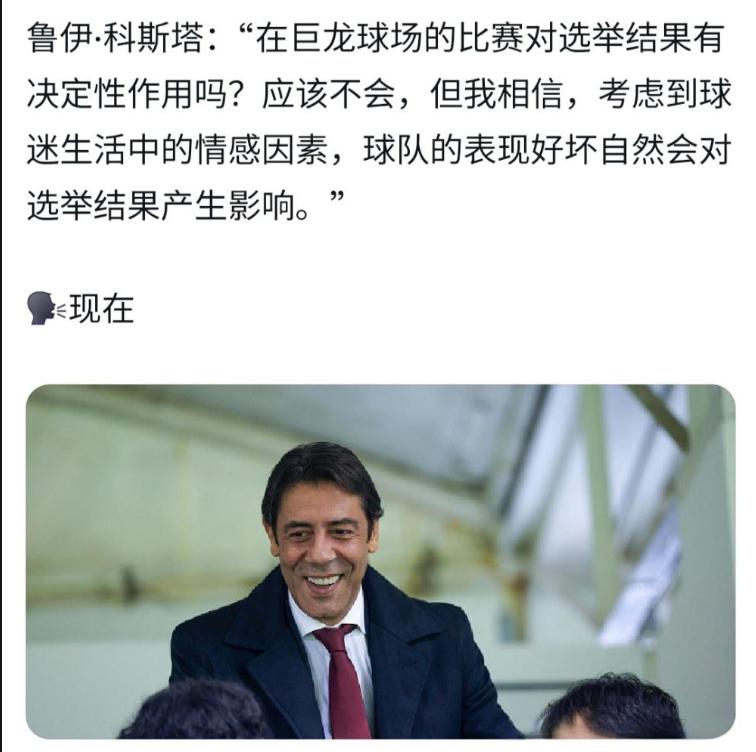 穆里尼奥没能拯救前米兰传奇前腰鲁伊科斯塔,本菲卡俱乐部选举的最新民调出来了,在前两个比赛日期间,投票数量已经统计出来了,对阵里奥阿维时,洛佩斯和科斯塔的占比分别是47.7%和27.5%,对阵维森特时,洛佩斯和科斯塔的占比分别是55%和38%。 这差距可不是一般的大,只要对阵波尔图后的首轮投票,对手洛佩斯超过50%,就没有第二轮的投票了,现任老大科斯塔就可以卷铺盖走人了。 所以巨龙球场一战的胜负,基本上就成为前米兰传奇前腰的一线生气,只要赢下葡萄牙德比,科斯塔就能把悬念拖到第二轮,然后寻找合作者,把第三和第四位竞选者的票拉过来,背水一战。 不过对手诺罗尼亚·洛佩斯很机敏,多次表示自己当选后,教练依然是穆帅,这让科斯塔的鸟叔牌没起到太好的效果:“穆里尼奥是一位伟大的教练。我们只希望他能带领本菲卡打出好成绩。我们都来支持穆里尼奥,我也会去巨龙球场支持本菲卡。” 所以,科斯塔还是自求多福吧!本菲卡球迷想要寻求改变,而穆里尼奥这次显然也救不了他了哦!