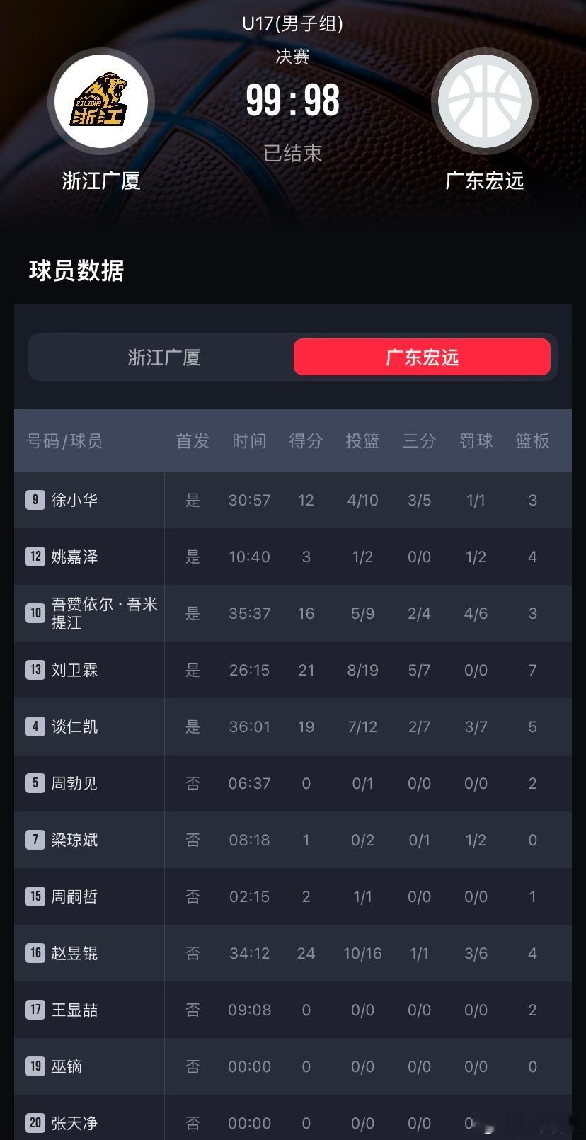 有些可惜,U17南区决赛广东宏远惜败广厦1分,最后时刻谈仁凯两罚不中遗憾错失绝杀