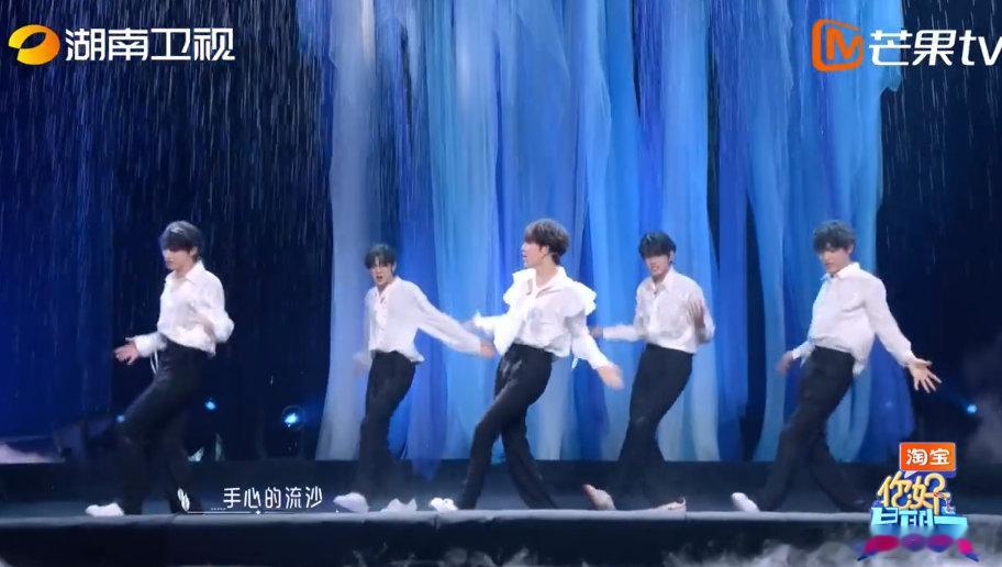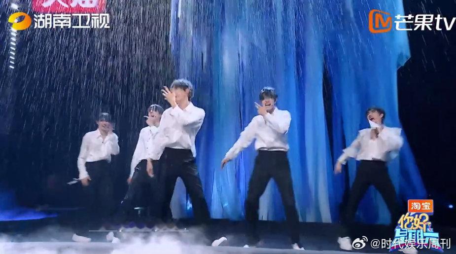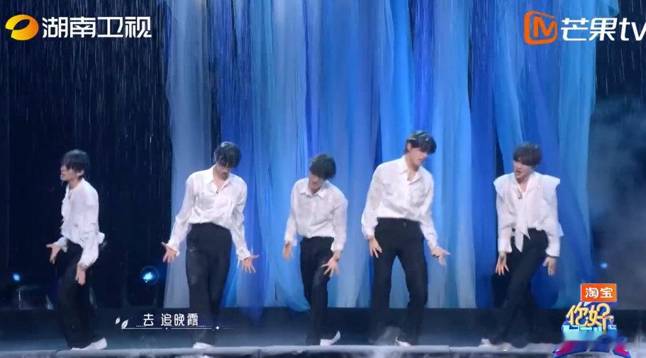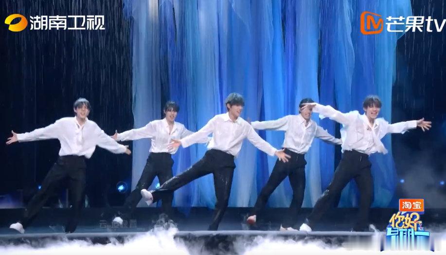 登陆少年雨中蒙眼跳等你的回答你好星期六 舞台状况版《等你的回答》超燃!黑衣人搅场、蒙眼盲跳又遇雨,状况一个接一个。不过弟弟们动作标准、走位无懈可击,实力在线!TOP登陆少年组合[超话]