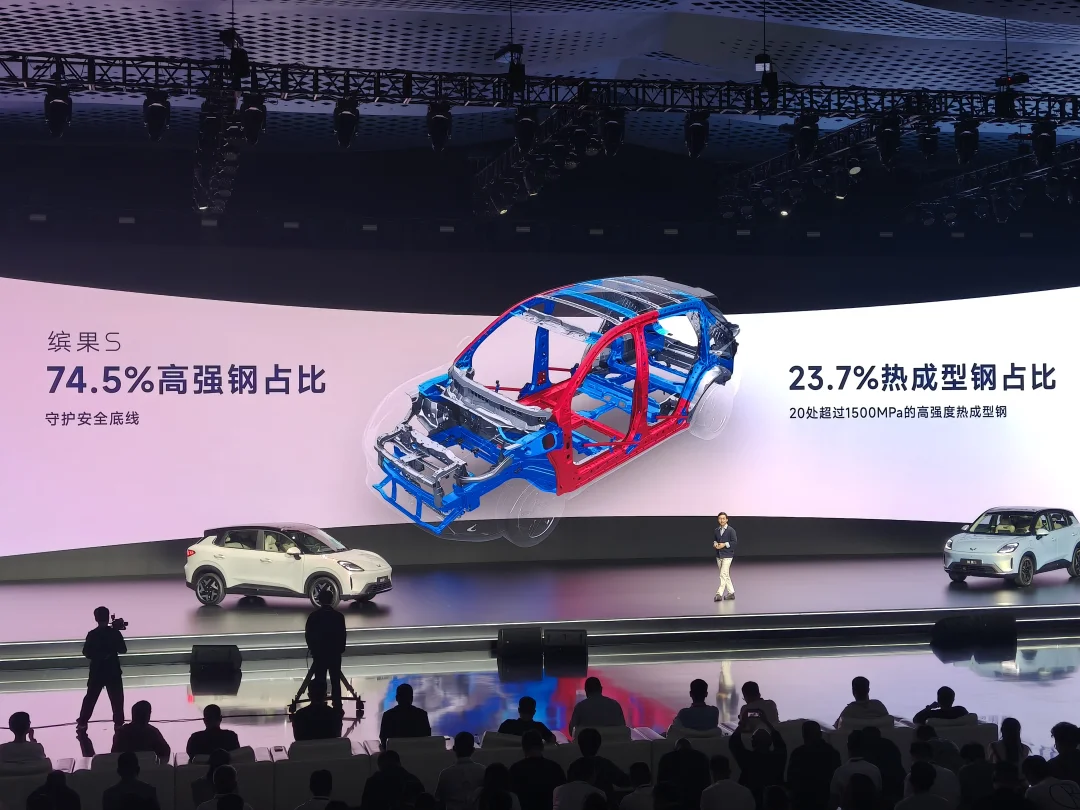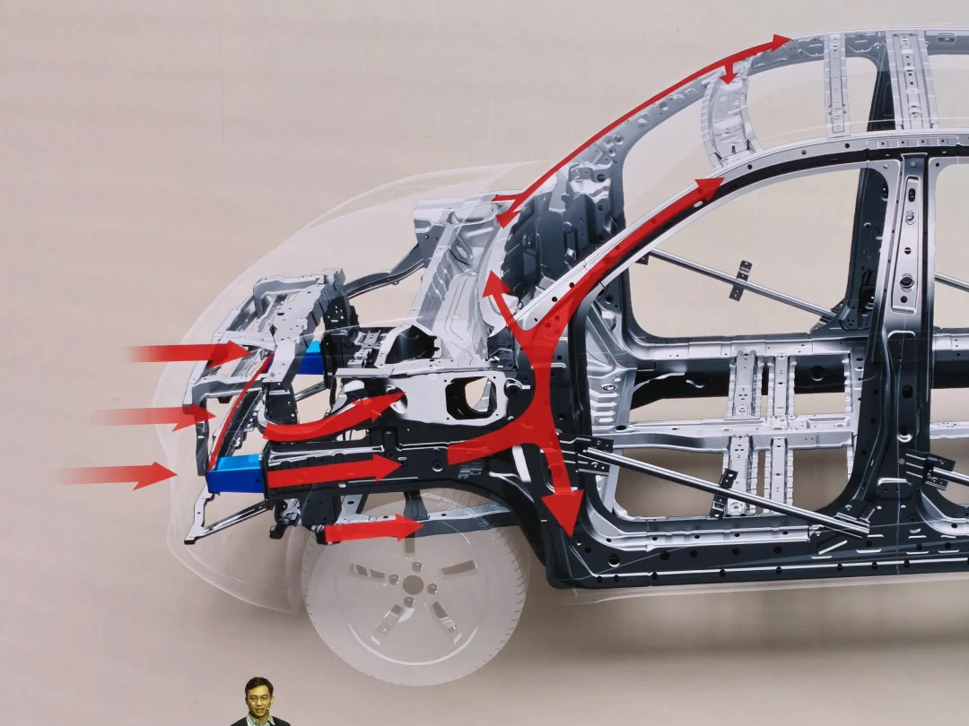缤果s车身这个框架 这个真的给好评 也是新架构的意义 74.5%高强度钢比例 23.7%热成型钢比例 后防撞梁2000兆帕热成型钢 (我没看错的话) 2025年度十佳车身(唯一A0级)