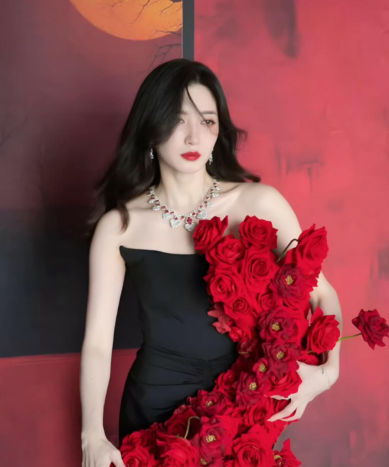丝滑黑裙配红唇,江疏影的优雅气场藏不住