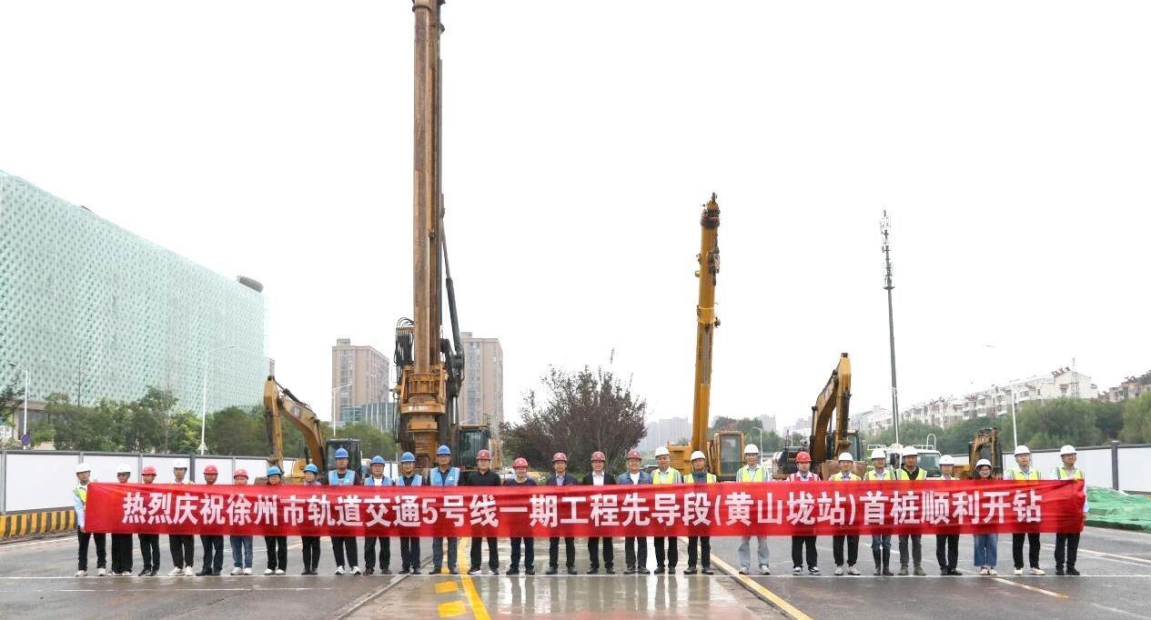 【徐州地铁传来最新消息!】近日,徐州地铁5号线有新进展。 5号线一期工程黄山垅站主体围护结构首桩顺利开钻,标志着该工程先导段项目正式步入实体结构施工阶段。 徐州地铁5号线一期工程先导段黄山垅站为5号线与1号线的换乘站,车站位于和平大道与备战路交叉口东侧,沿和平大道东西向敷设,车站为明挖法施工的地下两层岛式车站。共设1个换乘通道,2个出入口,2组风亭。 地铁5号线一期工程起自鼓楼区北三环与平山北路交叉口处的徐矿城站,沿平山路、二环西路、湖北路、和平路、民祥园路、中央活力区规划路、峨眉路等敷设,止于云龙区汉源大道与峨眉路交叉口处的奥体中心南站,起终点预留二期延伸条件,线路全长约25公里,均为地下线。 全线共设置车站20座,其中人民广场站、师范大学站、和平路站、狮子山站、中央活力区中心站、紫金路站为换乘站,工业技术学院站预留换乘条件。新建大郭庄停车场和徐矿城车辆段各1座。