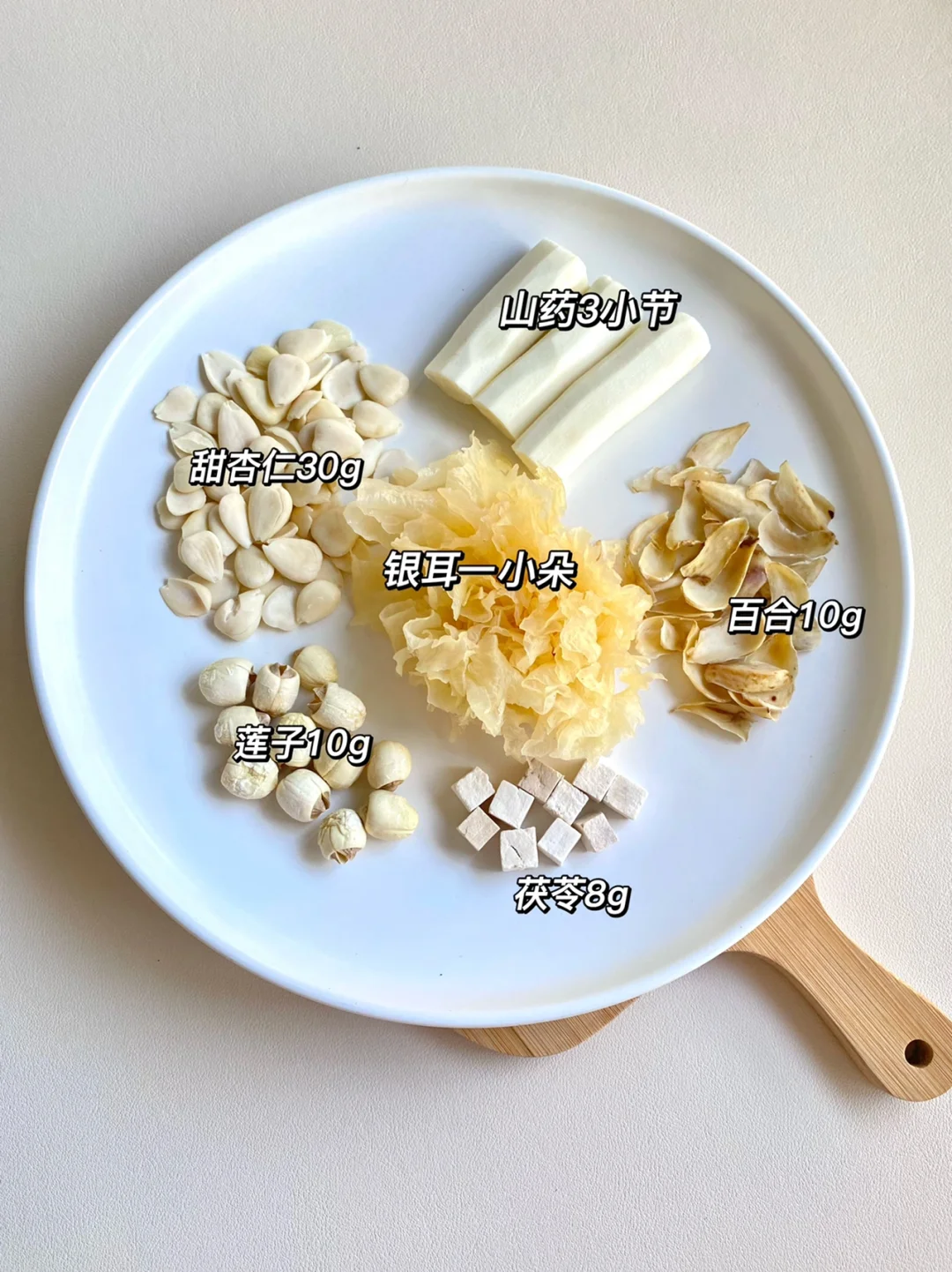 想要皮肤透亮白皙!平时就要多吃点水润的食物! 黄黑皮姐妹一定不能错过这杯! 银耳的润泽,山药的滑糯,搭配茯苓百合莲子和甜杏仁,每一个食材都对皮肤很友好!! 养颜润燥!!还健脾胃!! ✔️食材:银耳、山药、茯苓、甜杏仁、莲子、百合 🌟做法:食材洗净放入破壁机,豆浆模式打25min 建议女孩子夏天把奶茶换成它!真滴白! 丝滑香浓的,营养好喝!!越喝越美腻!!