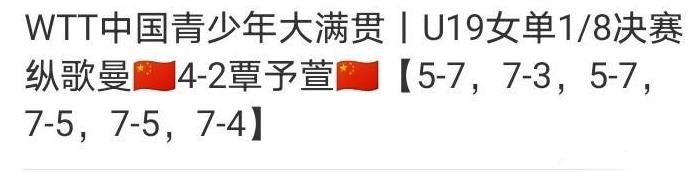 覃予萱想打出来,真的太难了,这主要还是稳定性不够,中国大满贯赛成人组女单和女双都是出局。 #万能生活指南# 昨天,在中国青少年大满贯赛女单U19八分之一比赛中,2:4,不敌纵歌曼,再次止步女单十六强。 覃予萱与纵歌曼两人,虽然覃予萱排名高过纵歌曼,但两人实力相差不大。 在对阵桥本的比赛中,两人都是几次被零封,但纵歌曼打得比覃予萱要好一点。 相信下次遇到桥本,可能纵歌曼会先与覃予萱战胜桥本。 国乒青少年大满贯赛女单八强,纵歌曼独守上半区,闫禹橦和胡一守下半区。 二线小将要加油呀!纵歌曼加油。