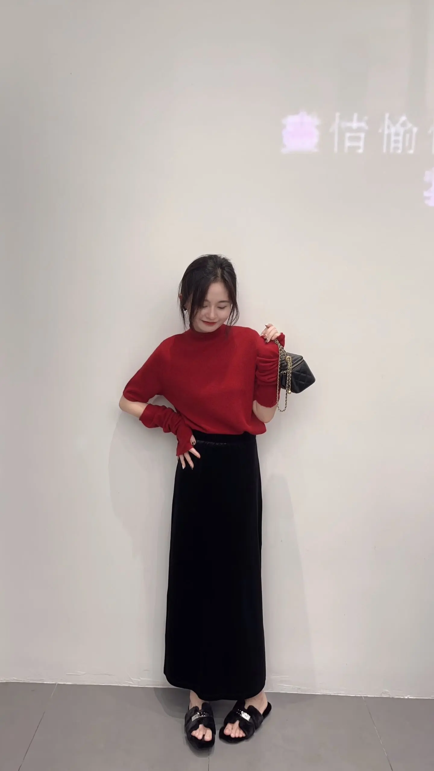 白鹿造型解析:毛绒大衣搭黑色针织裙,在都市中演绎优雅知性风