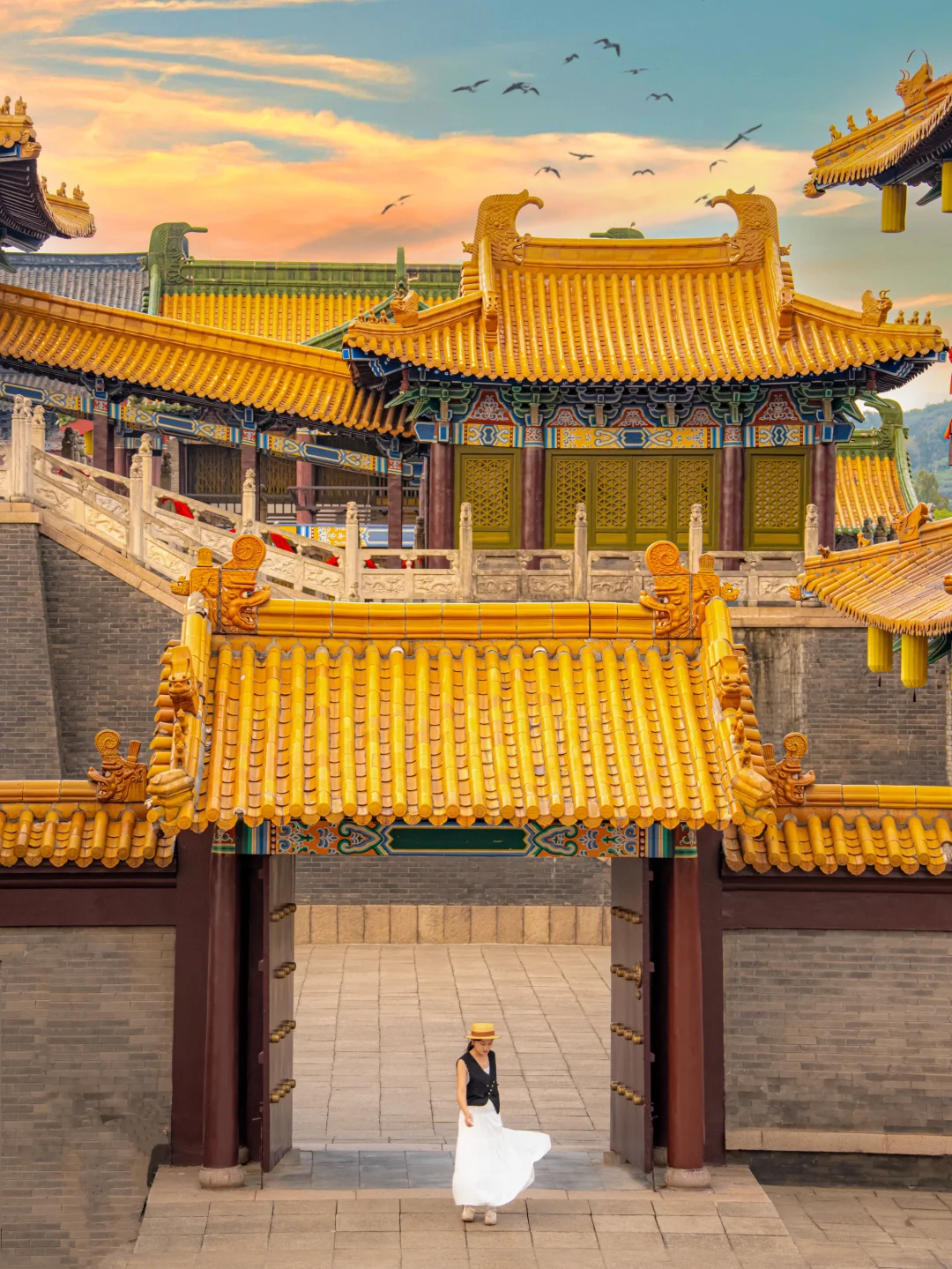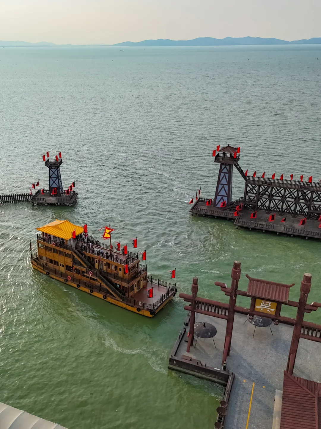 ✔三国城:入口→汉鼎广场→三英战吕布表演场→曹营水旱寨(战船必拍)→赤壁栈桥→神龙殿(台阶出片)→曹营木栈道(日落封神位)