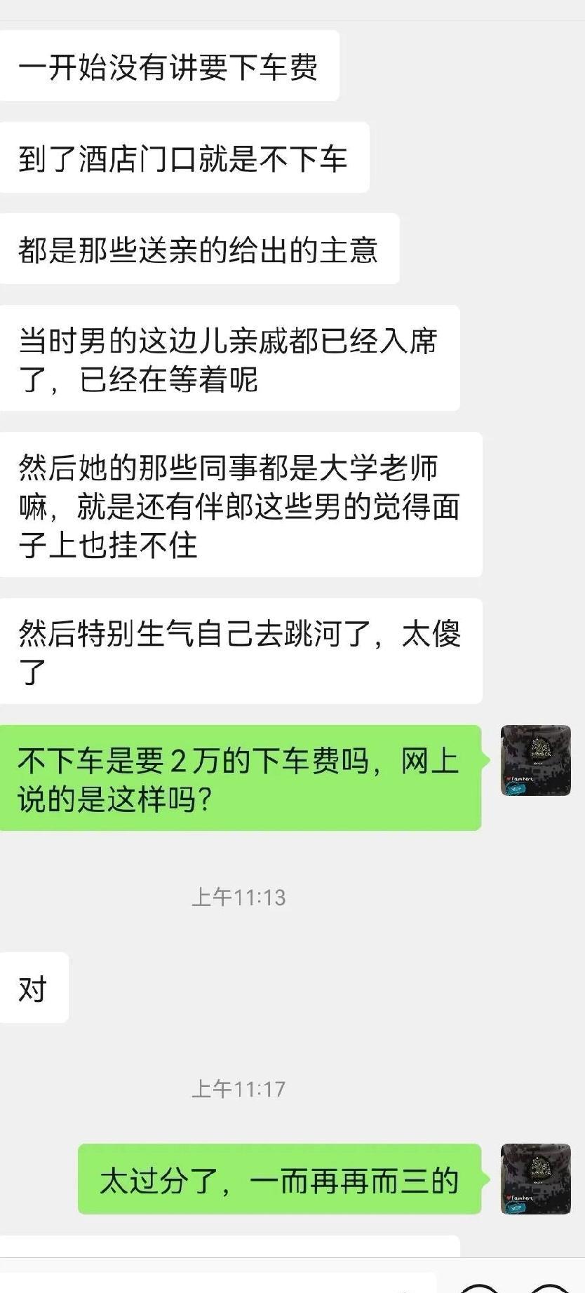 10月3日,陕西安康旬阳一29岁男子,因婚姻琐事跳河身亡。其母跟着一起跳河,被救起。看到这则新闻,有点难受。3号回老家我也参加了婚礼。这两天结婚的人好多。新郎29岁,研究生学历,有正式工作。可以说在当地众多普通家庭都是佼佼者。至于自杀原因,官方已经辟谣不是因为彩礼。在某乎上截了几个当地人提供的信息。有说是因为临时加的下车费2万,有说是为了结婚,男方家已经花费超过50万,男方顶着巨大的心理压力! 我只想说,这个婚就非得结嘛?自 杀不是解决问题的方法。你知道你选择自 杀 后,人们后来会怎么反应?真正难过受到打击的只有自己的父母。女方全身而退,可能一段时间内受到舆论谴责,但是最后人家还是能再嫁,完全不会影响生活。亲朋好友加上陌生人,也只会感叹一句,“这么年轻,太可惜了”!值得付出生命嘛! #新郎跳河# #陕西旬阳新郎跳河事件你怎么看# #彩礼# #彩礼这些事# #你支持废除彩礼吗#