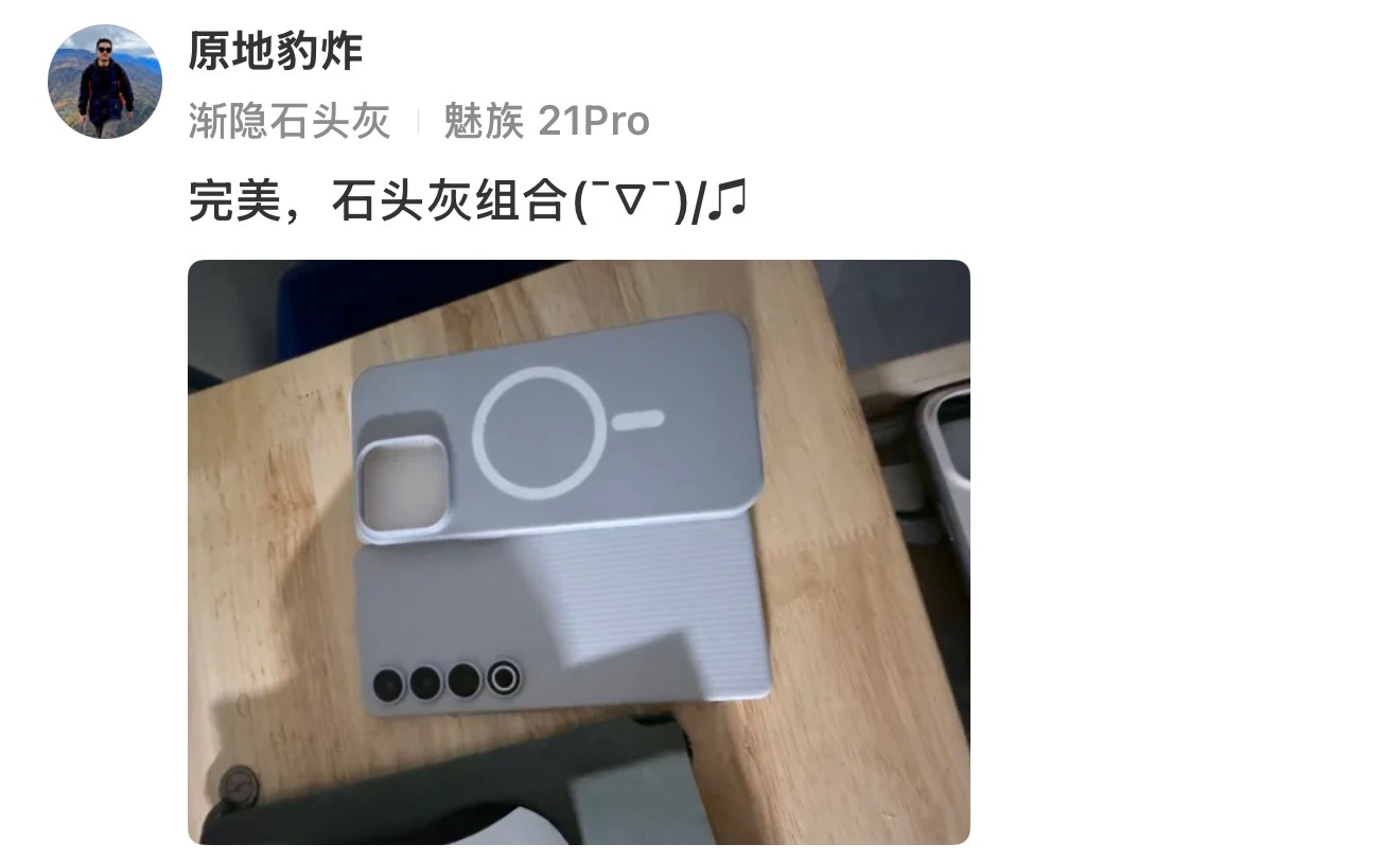 魅族 21Pro 超薄渐隐石头灰和 16ProMax PC 斜隐石头灰[嘻嘻]两款石头灰组合,两款都是轻薄好手感,而且不用担心粘指纹手汗,也不氧化发黄,nice 哦 ​​​