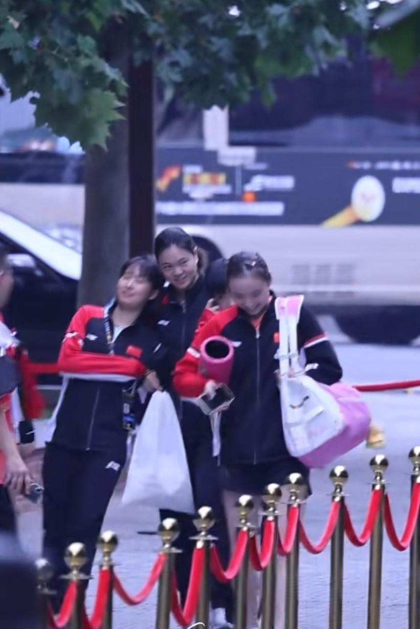 莎莎开心的去上训了。 今天是中国大满贯的最后一个比赛日,晚间女单决赛莎莎将对阵曼昱,上午看到莎莎和妹妹们一起开心上训,在路上大家说说笑笑,看起来心情都不错,看到德华也一起,朱梓予、王晓彤也一起上训了,应该一会儿王晓彤给莎莎陪练,朱梓予妹妹捡球。大家肯定是聊啥开心的事情,每个人的脸上都挂着微笑,莎莎的状态也很好,莎莎前面的刘海儿长度刚刚好,真漂亮。 这次中国大满贯莎莎是身兼两项,混双已经拿了冠军,她说目标是年底总决赛,不知道到时候能不能获得参赛资格。这次比赛,莎莎确实只有第一场是外战,对阵平野美宇,剩下的比赛都是和队友,女单1/4决赛,莎莎是4-3战胜王艺迪,昨天的女单半决赛,莎莎是4-2战胜了陈幸同,今晚决赛对阵王曼昱。 晚间一场男单决赛,一场女单决赛,期待大家精彩的对决。