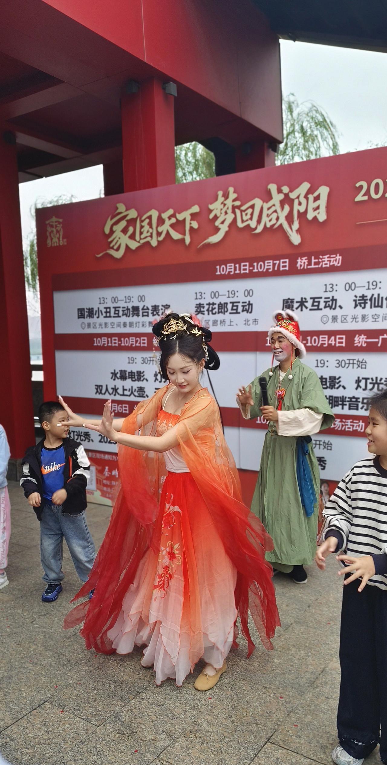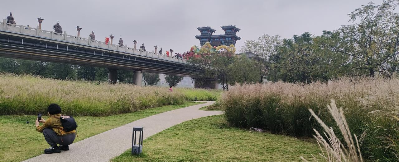 咸陽彩虹桥人流如织,一派节日欢快景象,秋之红叶,芦苇飘荡,渭水涛涛,快艇飞窜,连天空的雲也"爱心"装扮,真乃天随人愿也…美中不足是没有艳阳天。