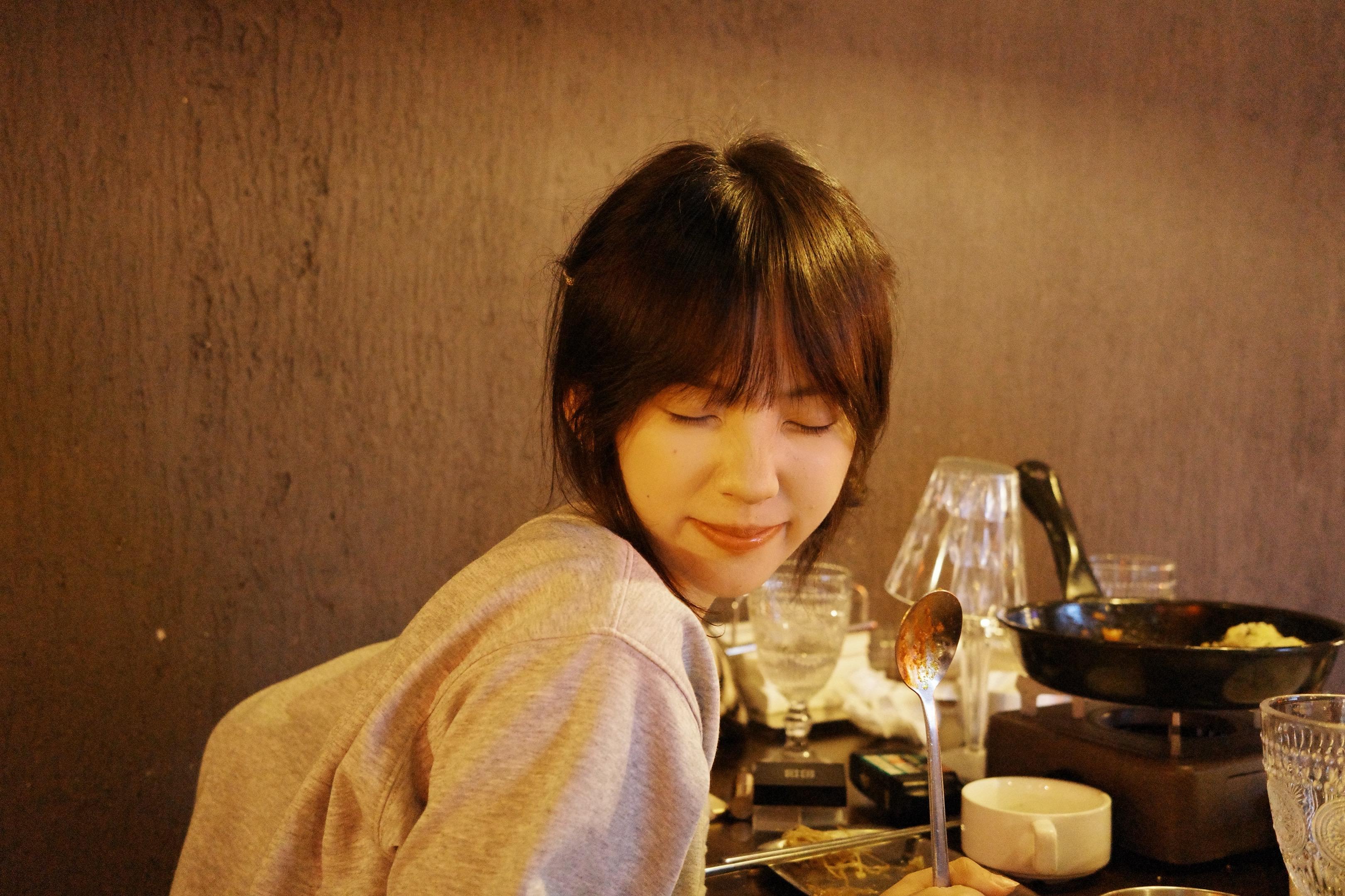 一位长相漂亮、身材出众的姑娘,穿上了一件对身材要求极高的紧身款一字肩粉色针织衫搭