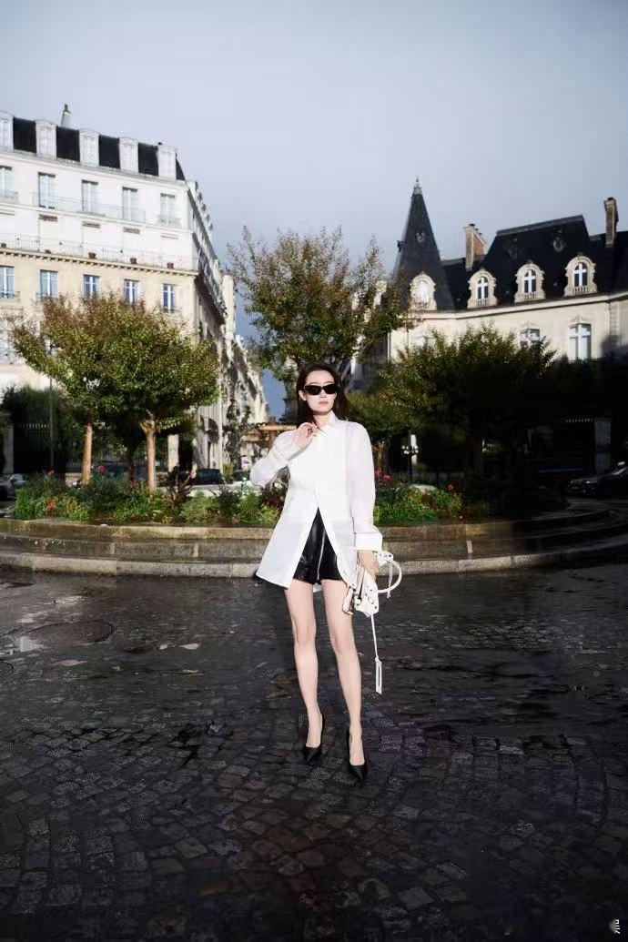 张小斐闪耀巴黎张小斐亮相巴黎太惊艳!流光白衬衣衬得她优雅迷人,皮裤增添酷劲,有