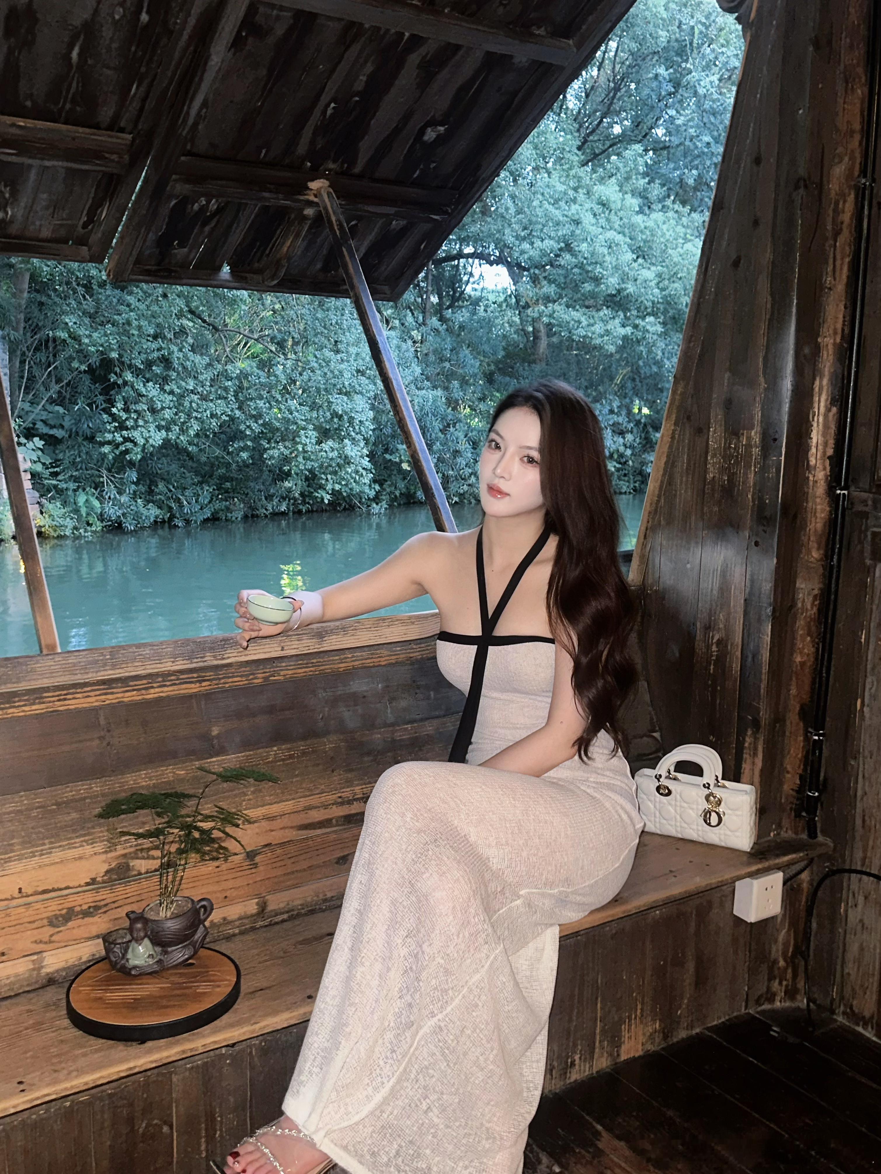 优雅小姐,你的背后是自然的画布。🌿✨