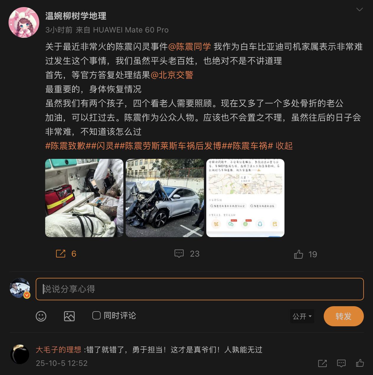 这次车祸中受害者的家属,是有微博的。