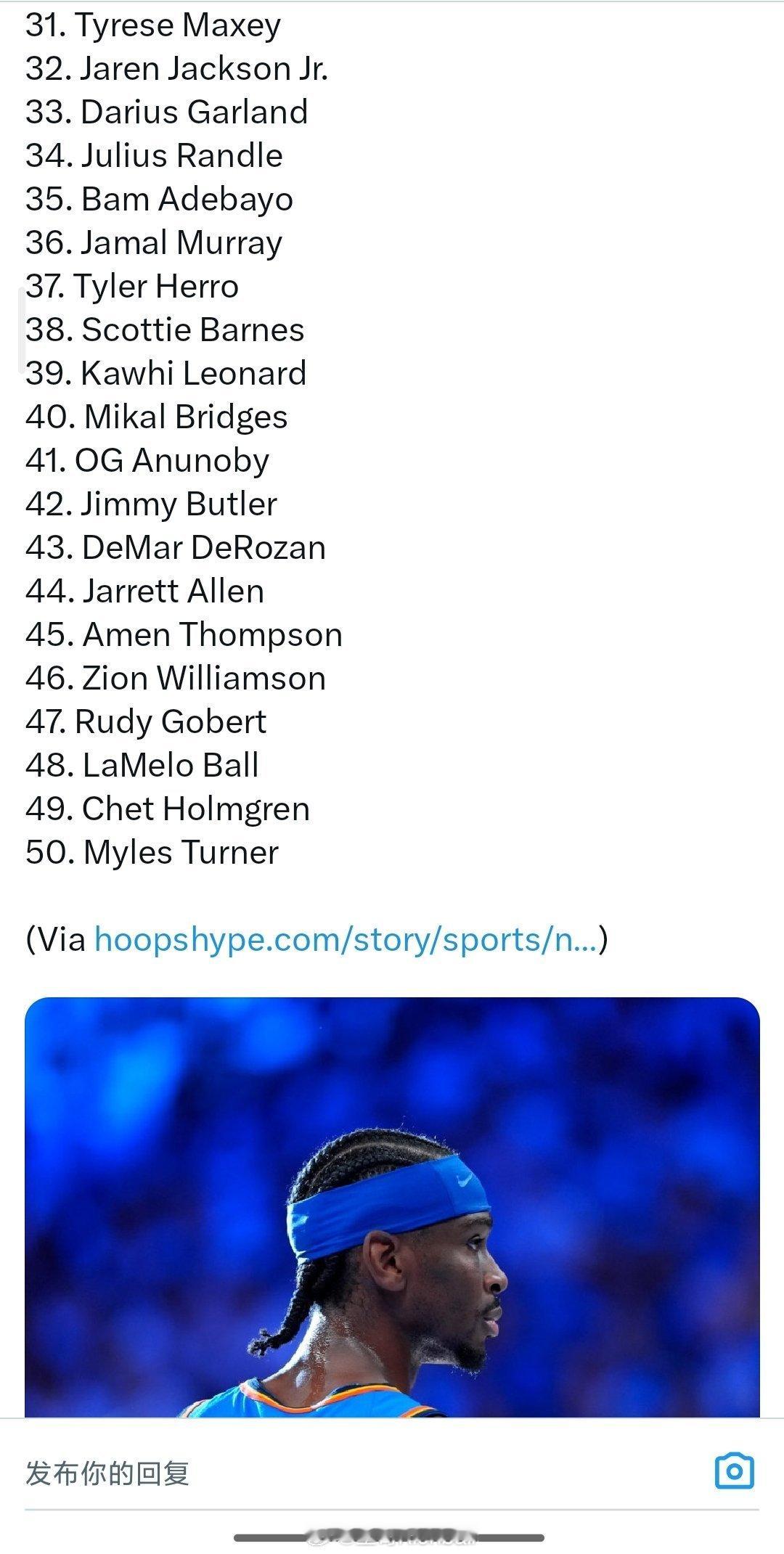 Hoopsypes评的TOP50球员名单:阿德巴约:35希罗:37比ESPN合理