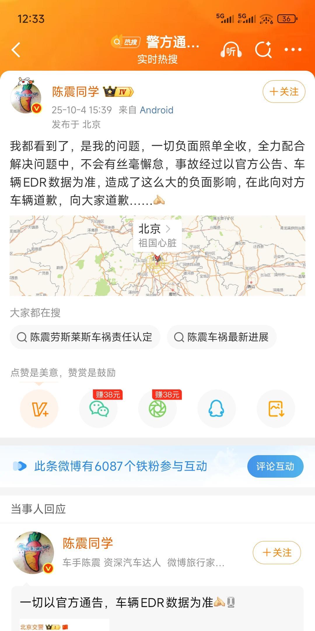 如果一名网红在城市道路上逆行并超速造成他人骨折,是否涉嫌危害公共安全罪?车圈网络红人陈震最近驾驶车辆造成交通事故,对方司机全身多处骨折,经交警确认为陈震全责!请问陈震是否涉嫌构成危害公共安全罪,比亚迪汽车家属是否可以要求检查机关介入,要求可以对陈震本人提起公诉呢?毕竟逆行和超速是马路杀手的标配!#陈震试驾体验# #陈震试驾# #交通事故立案# #陈震事故# #陈震同学发视频道歉:背后的故事与反思 近日,汽车博主陈震#