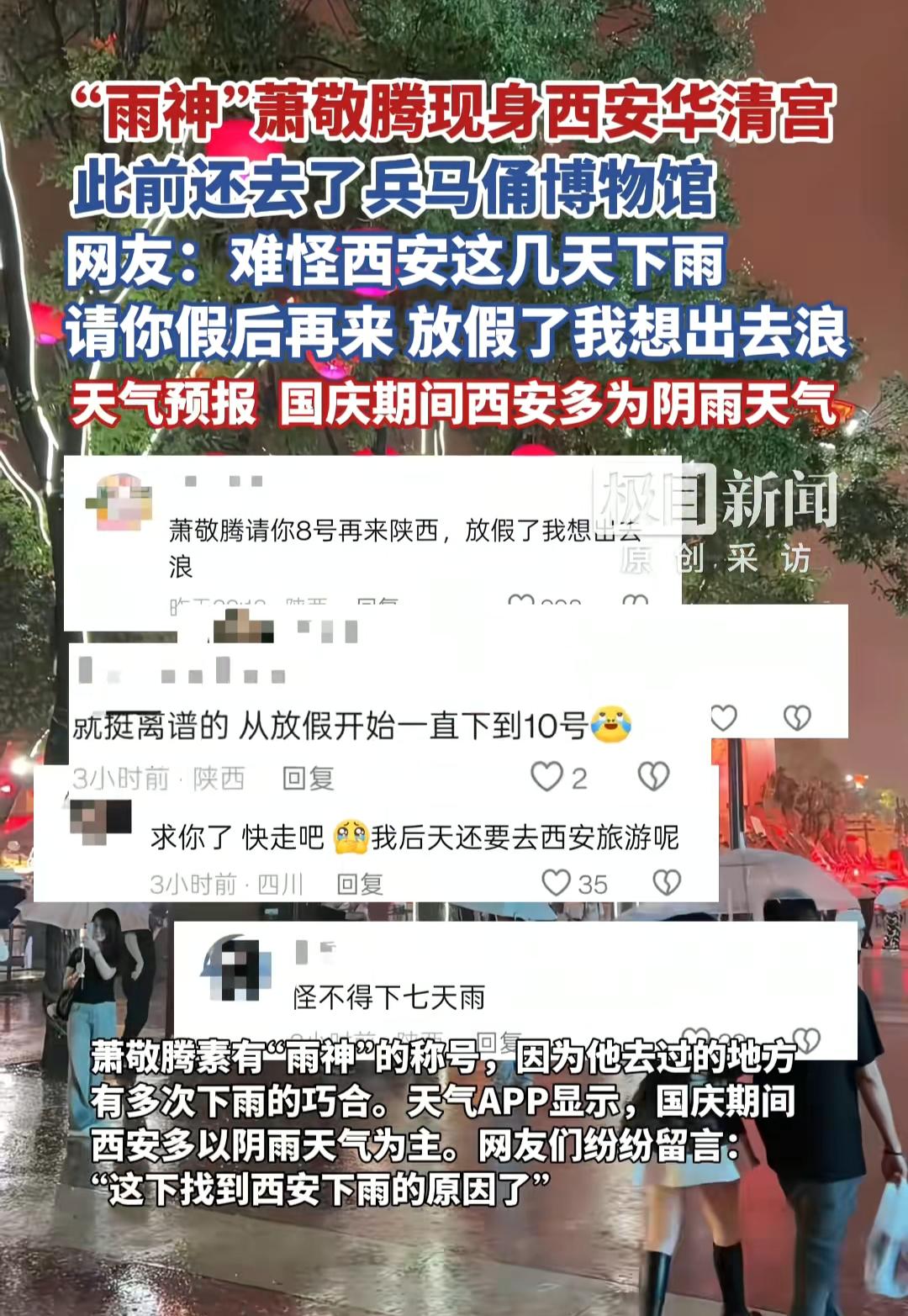 雨神“萧敬腾”来西安火上热搜了 我就说国庆黄金周,西安天天下雨。 不管是身为西