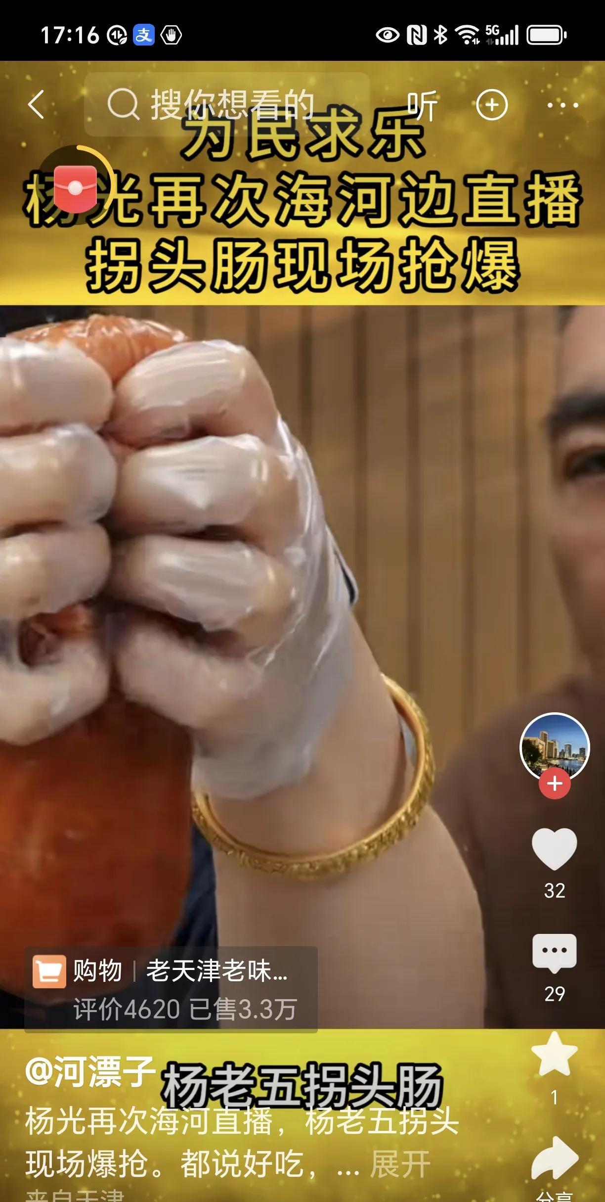 杨老五拐头肠,一款以海河艺术家名字冠名的香肠已然问世。海河艺术家现身海河边,为这款香肠开启推销直播。其价格合理,质量看上去也不错。