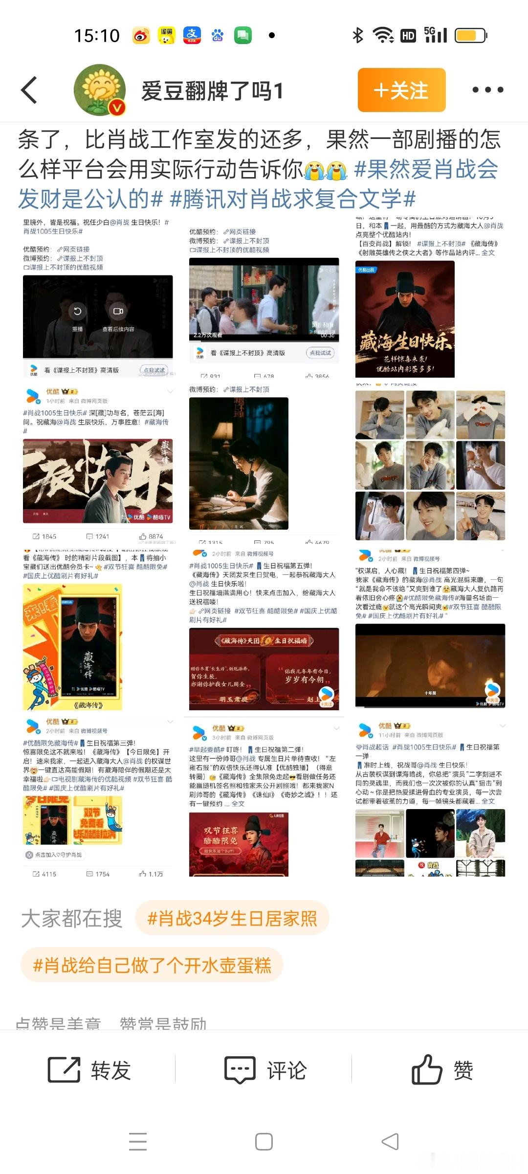腾讯对肖战求复合文学藏海传在优酷播出之后大爆,过生日优酷连发12条肖战,腾讯眼馋