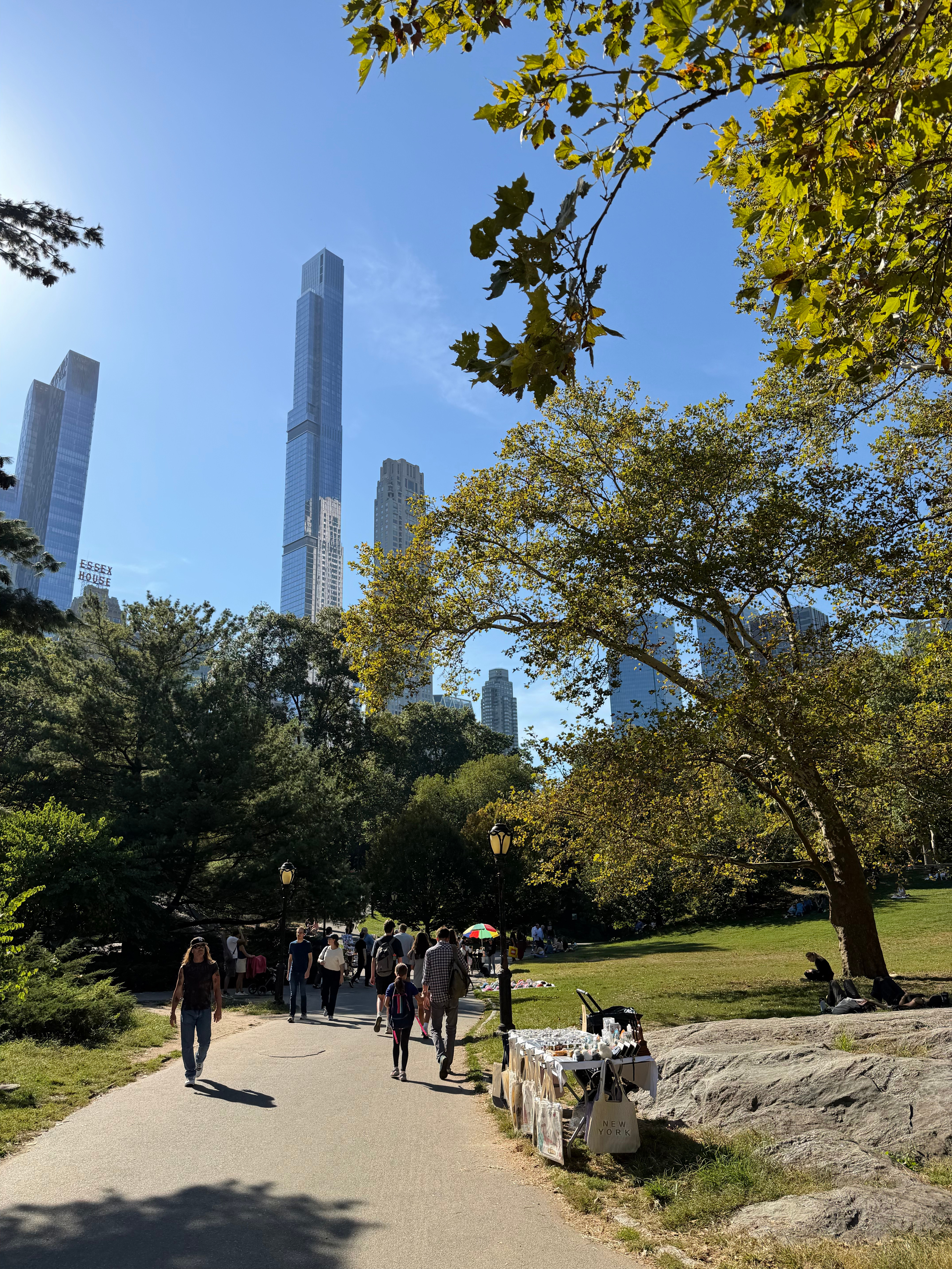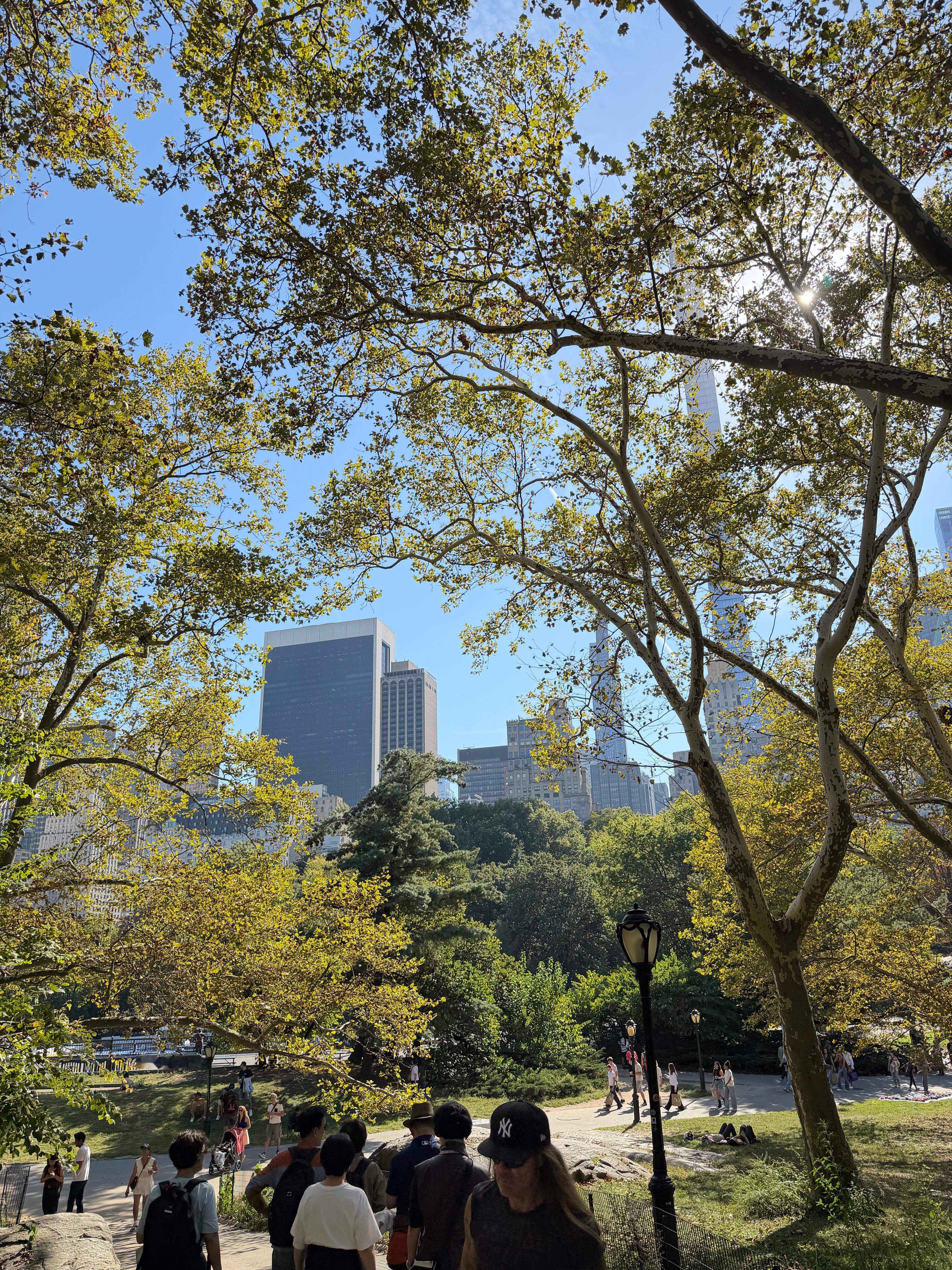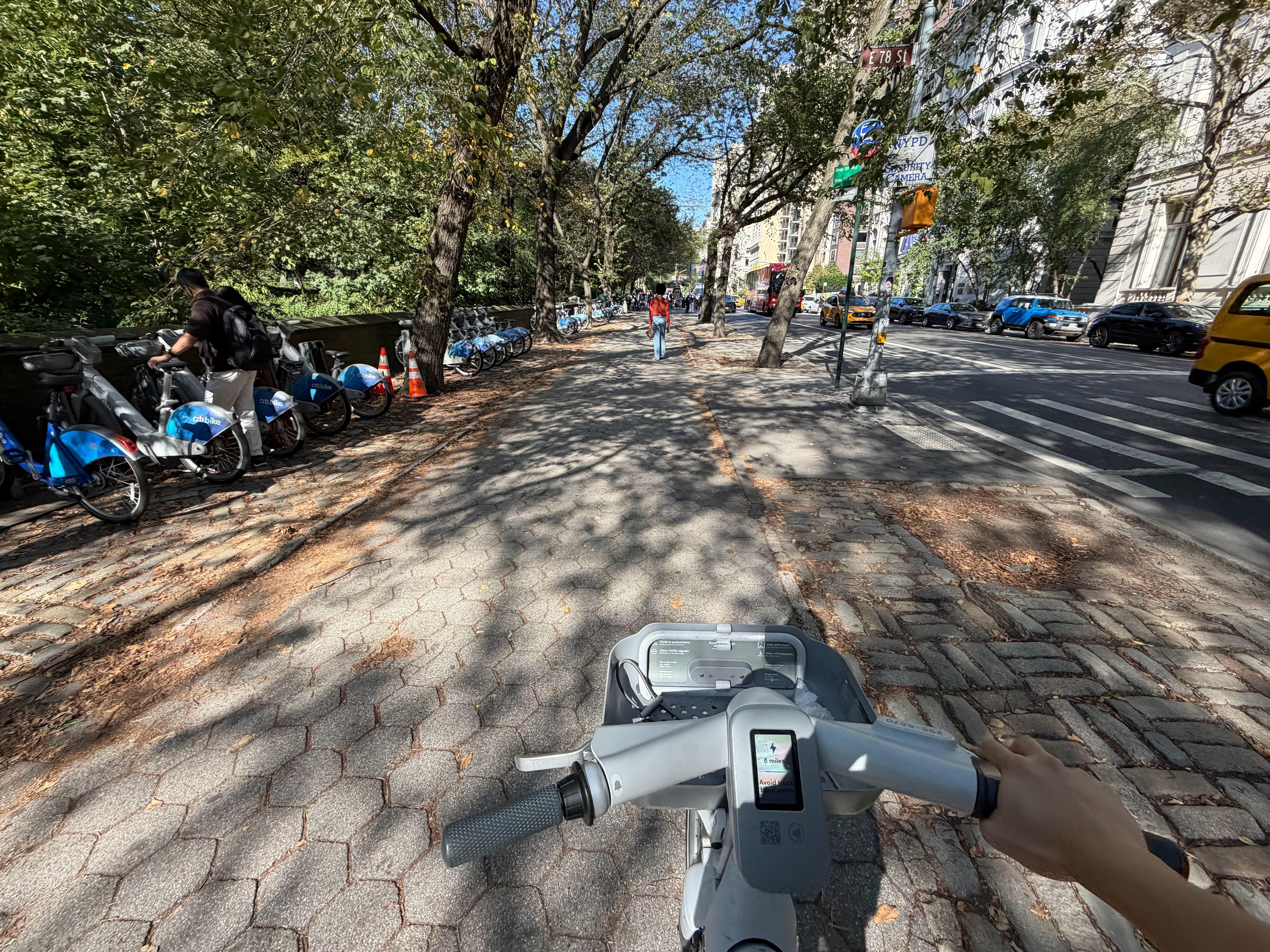 在繁华的都市中,人们悠闲的散步,骑车配合着初秋的金黄落叶,太美了