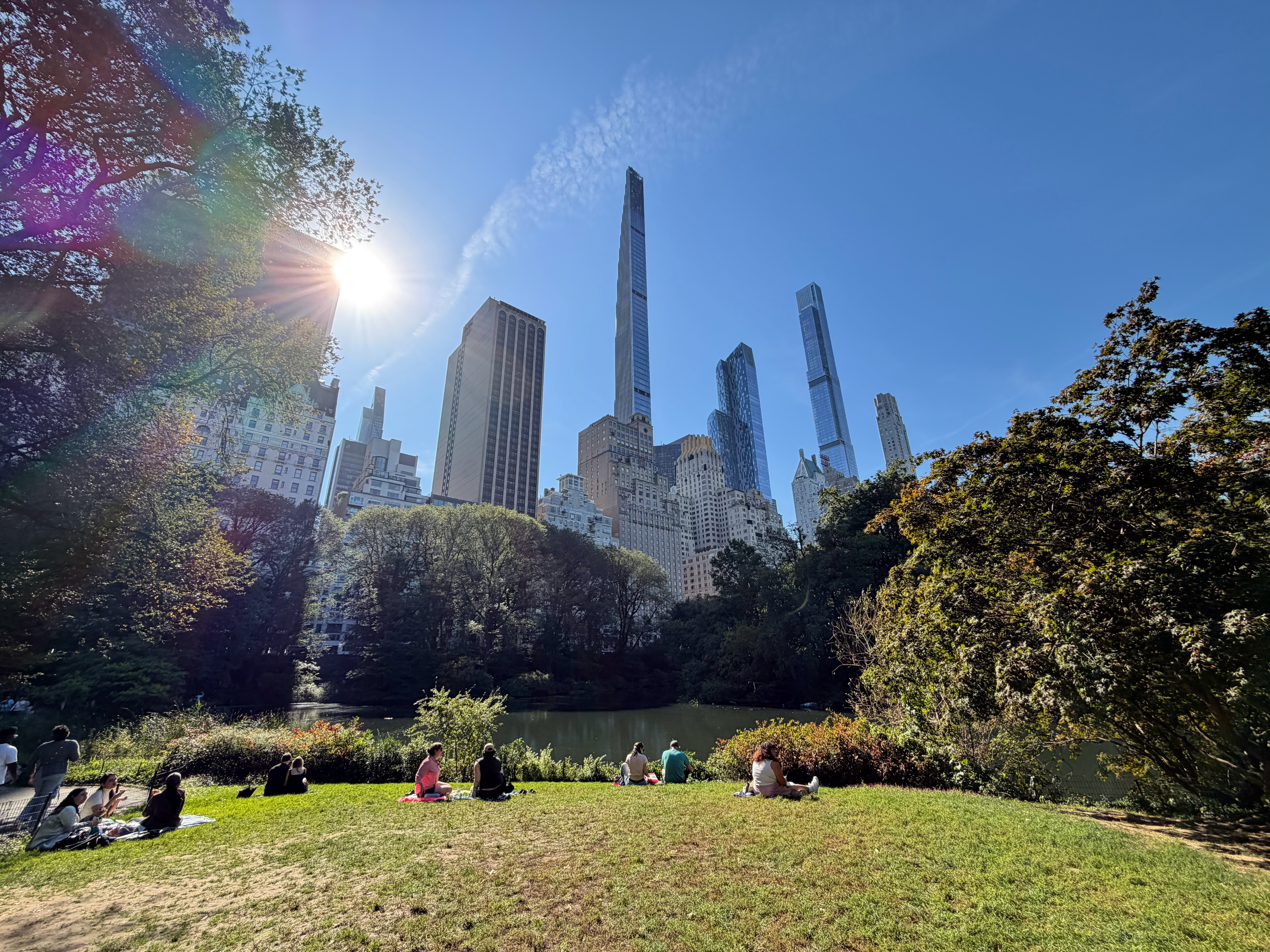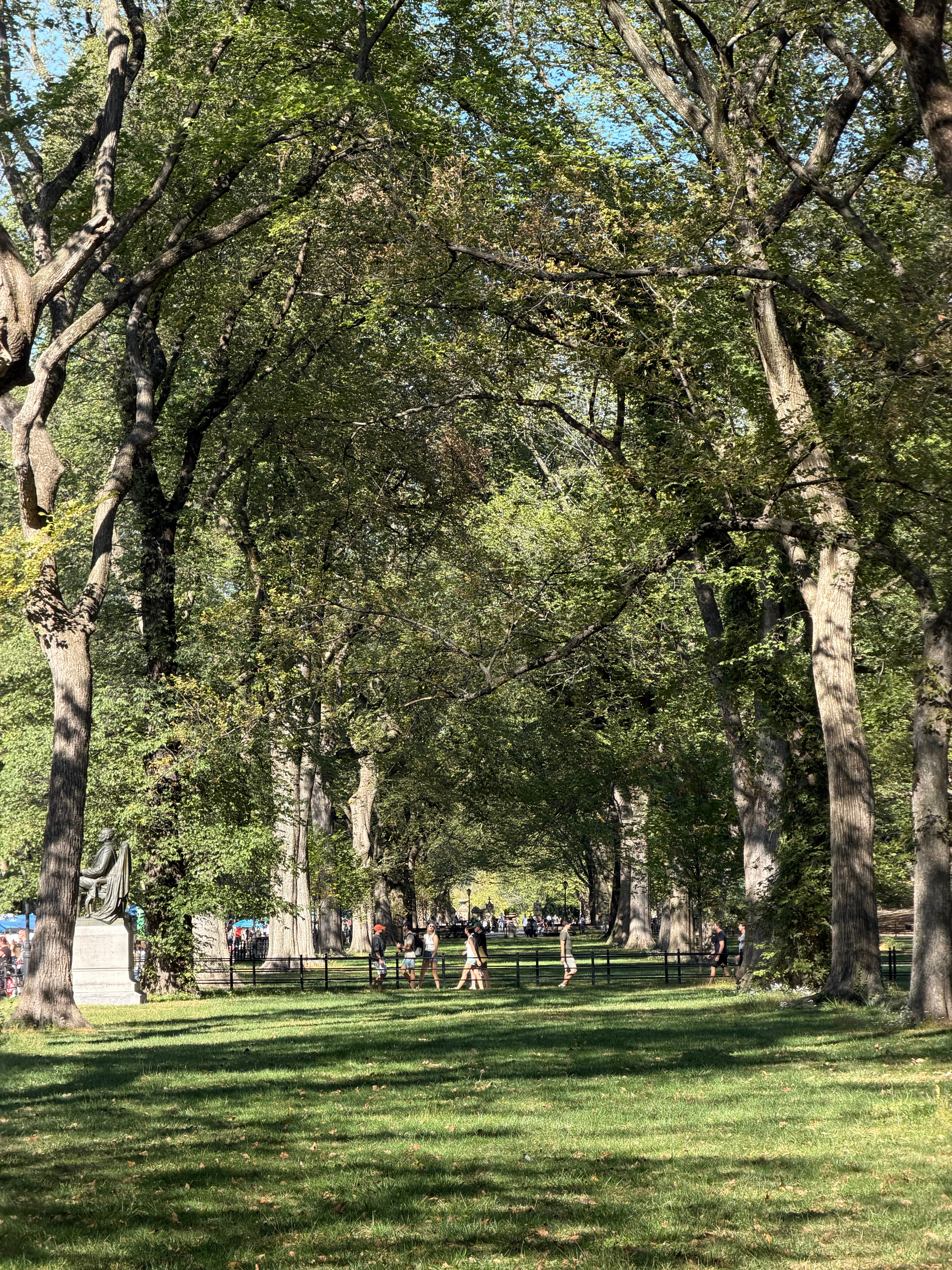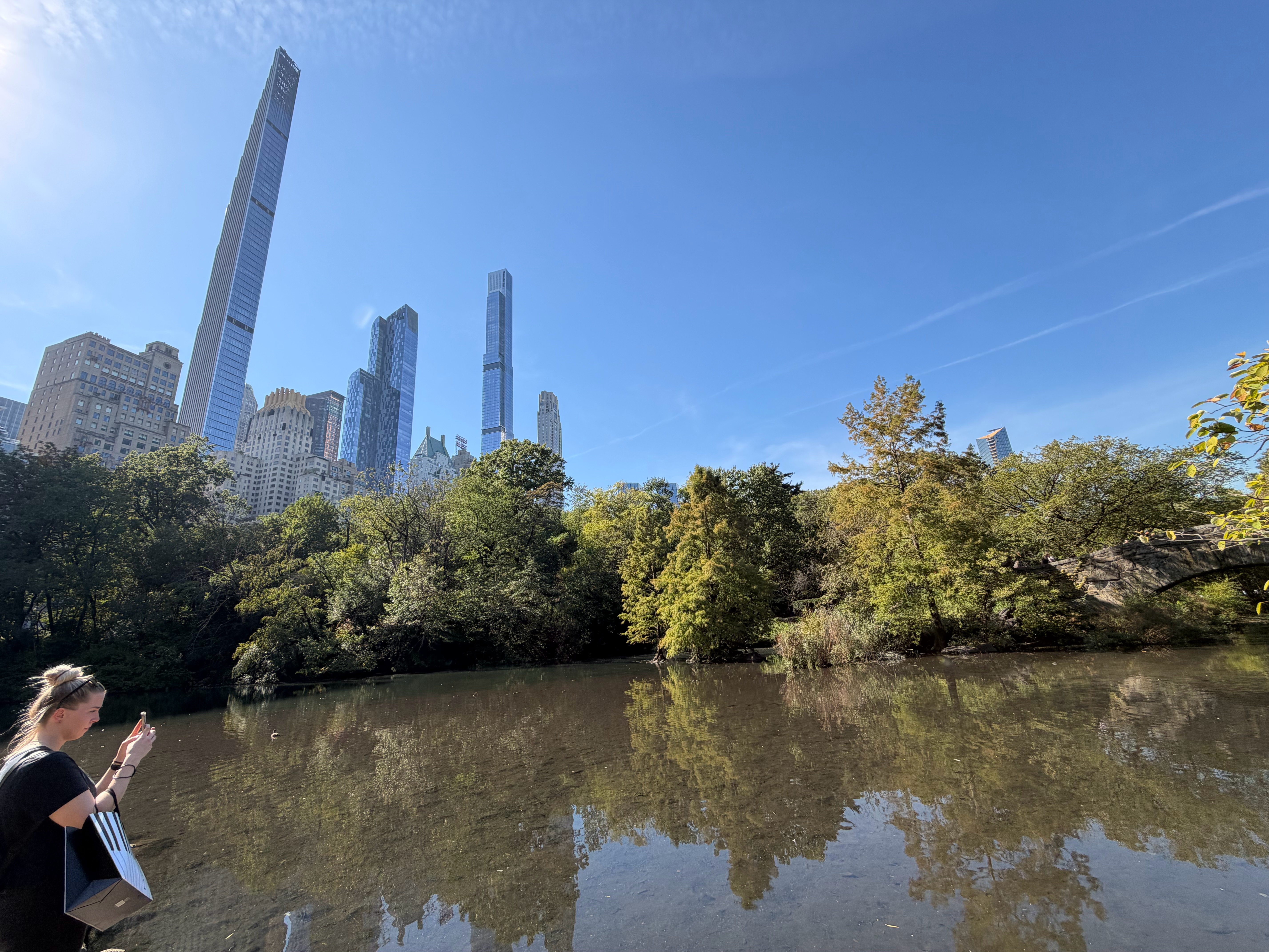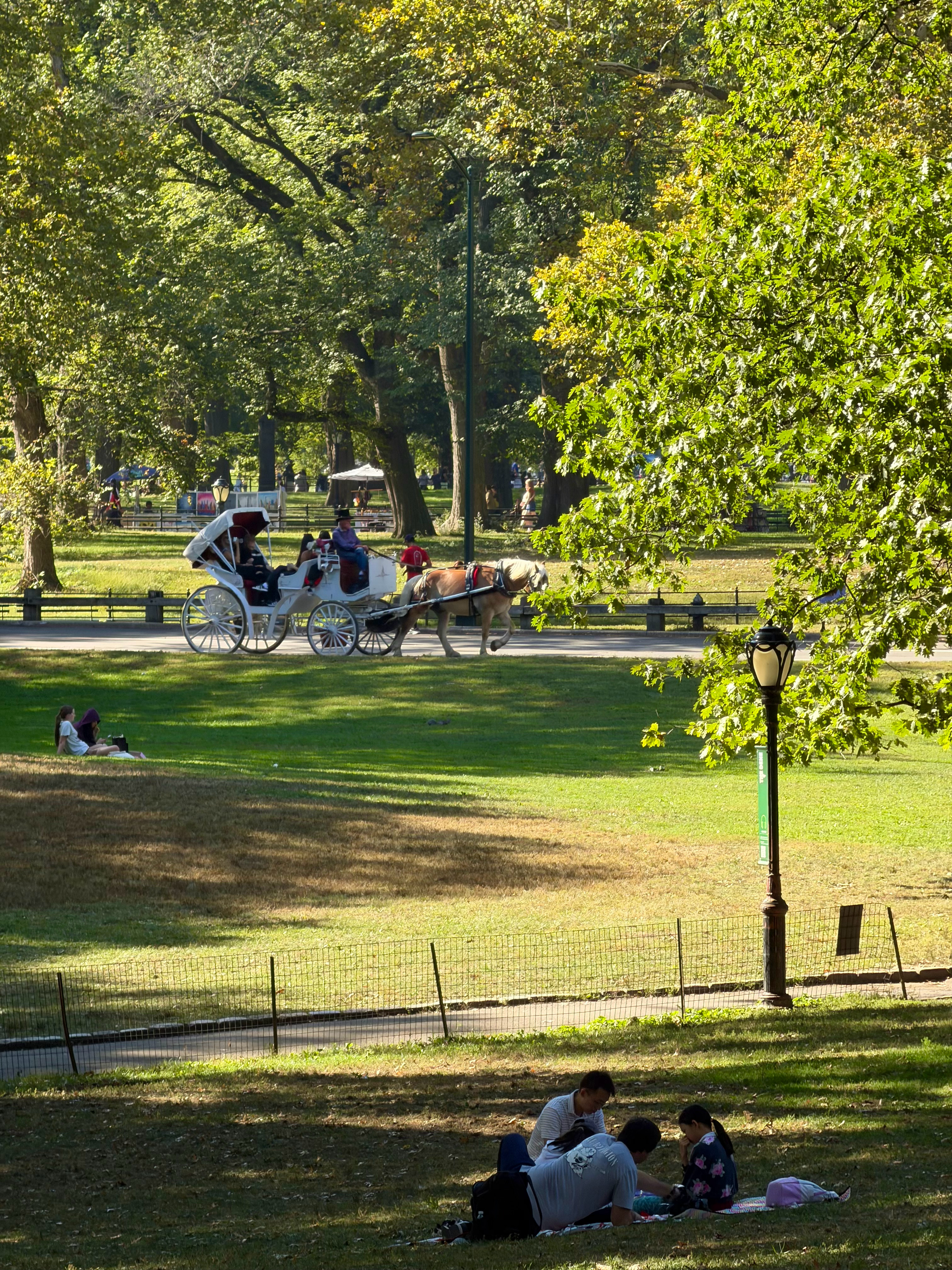 在繁华的都市中,人们悠闲的散步,骑车配合着初秋的金黄落叶,太美了