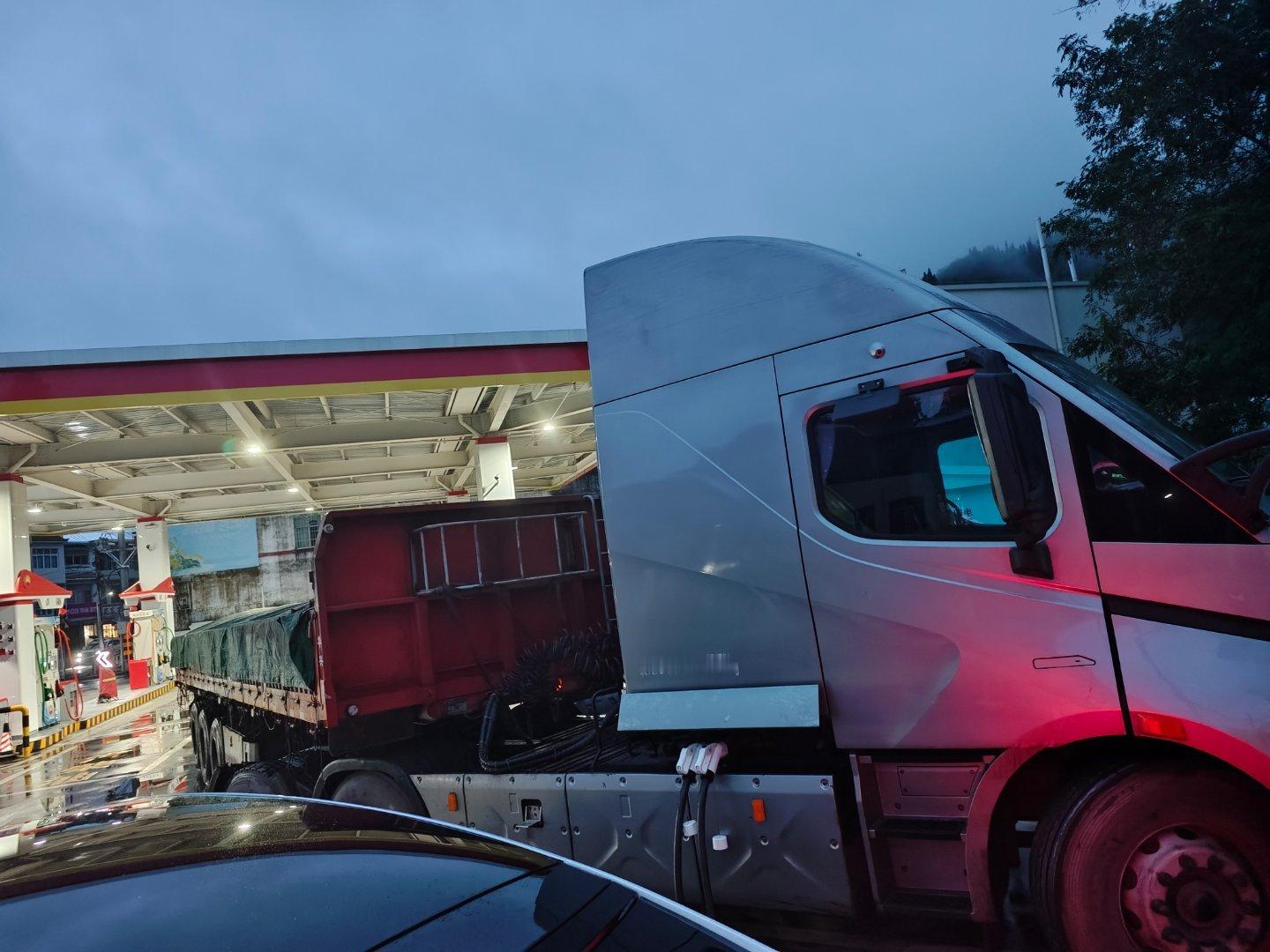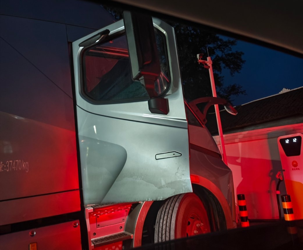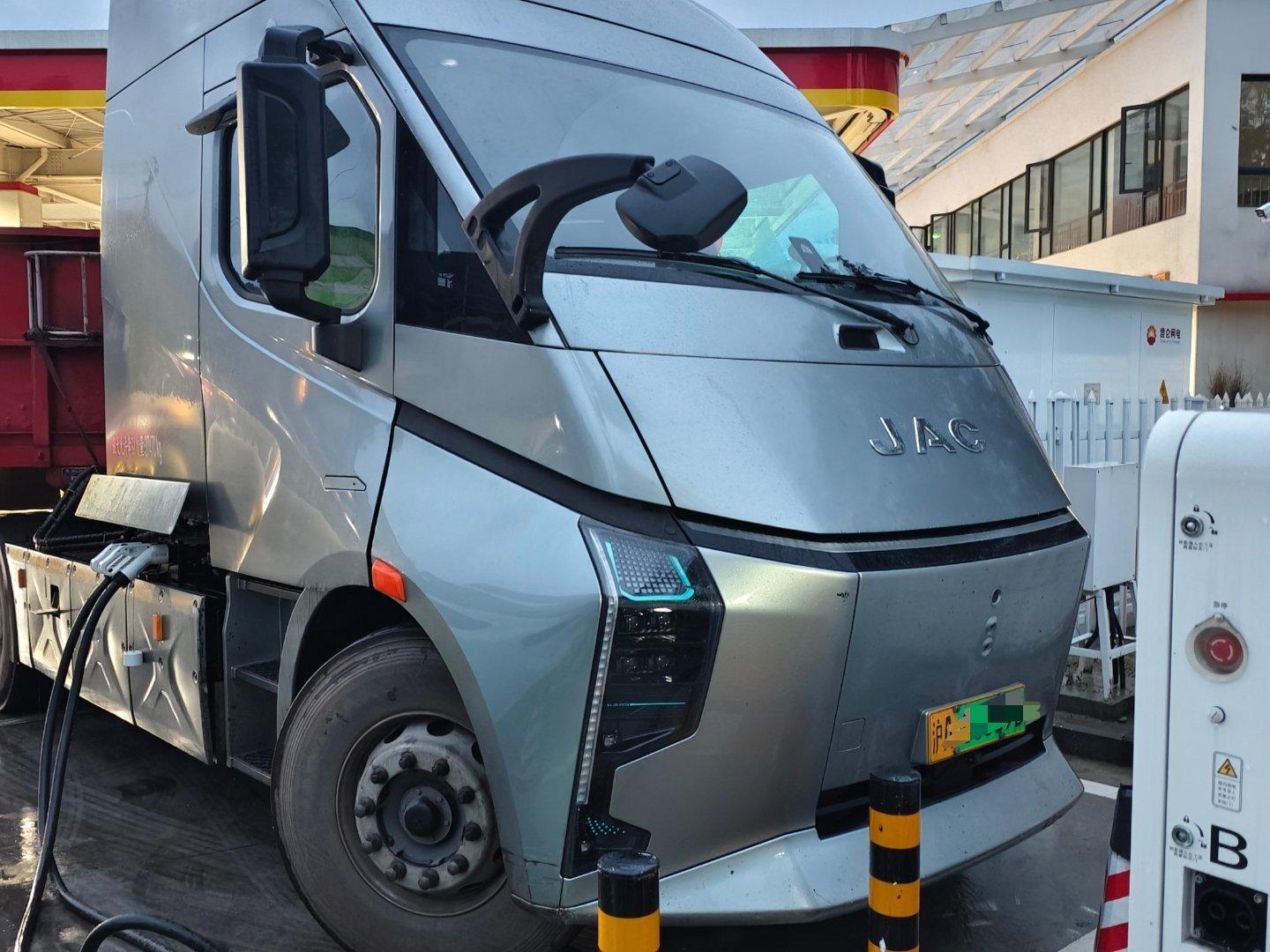 充电偶遇大挂车来充电,江淮的车头,这造型还有点好看,不仅有双枪快充,还有隐藏式门把手,而且还是反开门设计,这你受得了吗[流鼻血]
