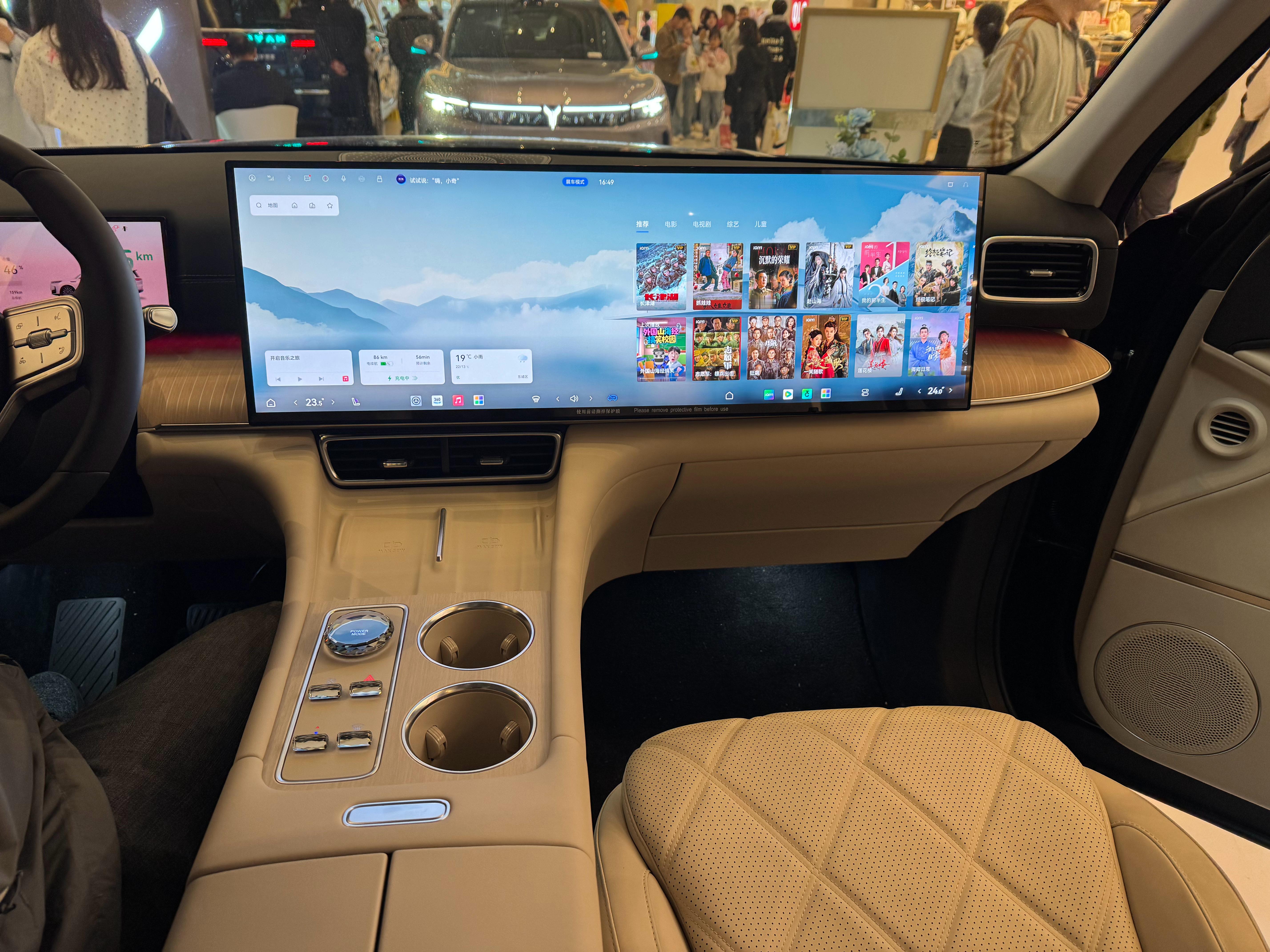 3,内饰的材质搭配很显档次,皮质、水晶、木饰、金属,和谐地搭配在一起,很高级。
