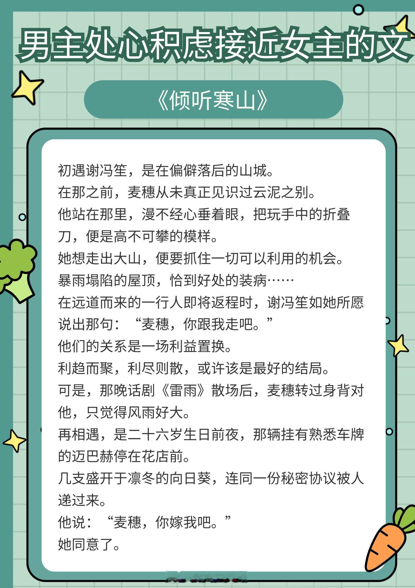 男主处心积虑接近女主的文,从头到尾设局,费尽心思,只为拥她入怀!
