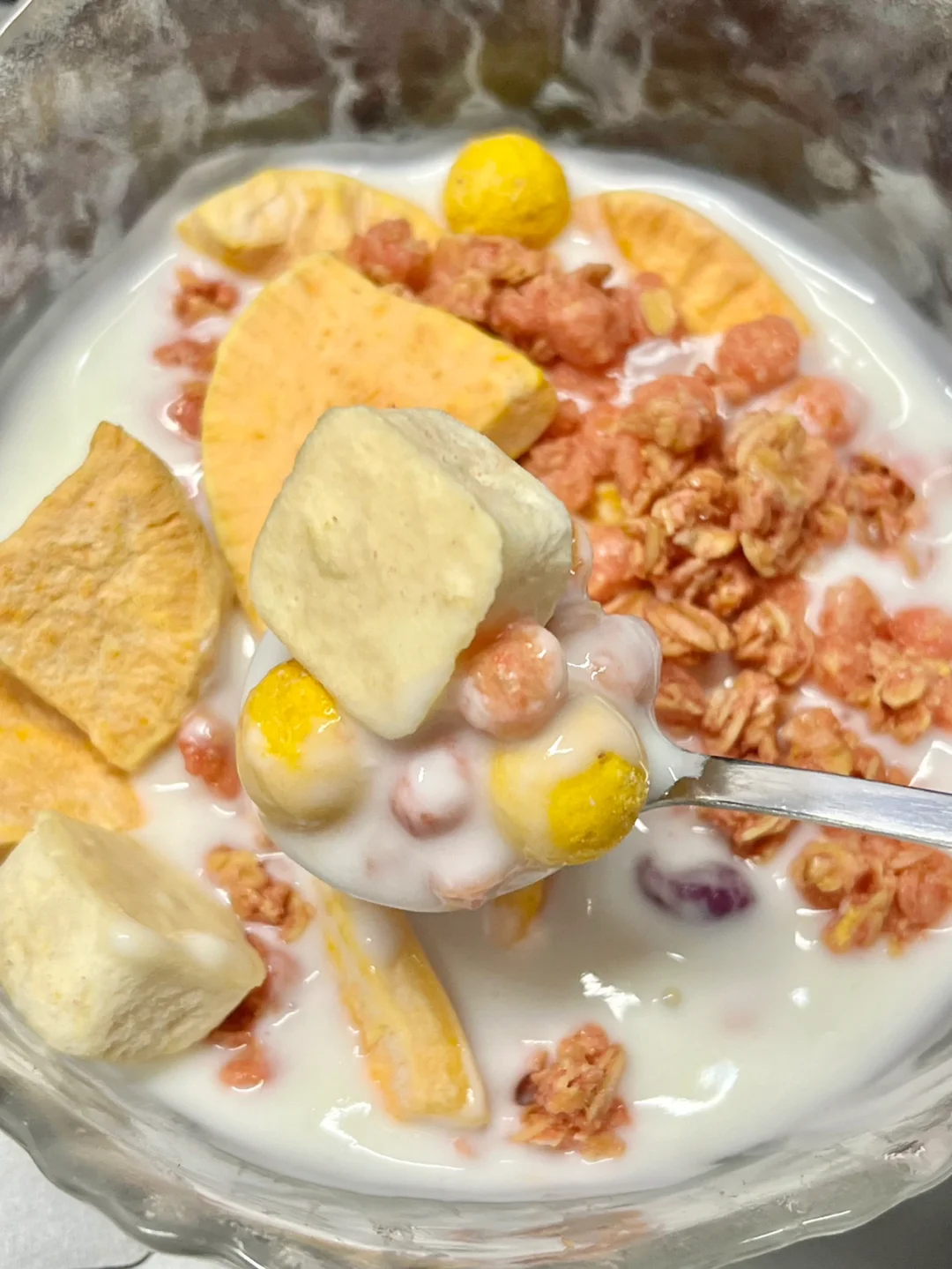 麦果脆一整袋都是各种料,用牛奶泡开当早餐也太香啦~好吃又饱腹!真的深得我心啊😭