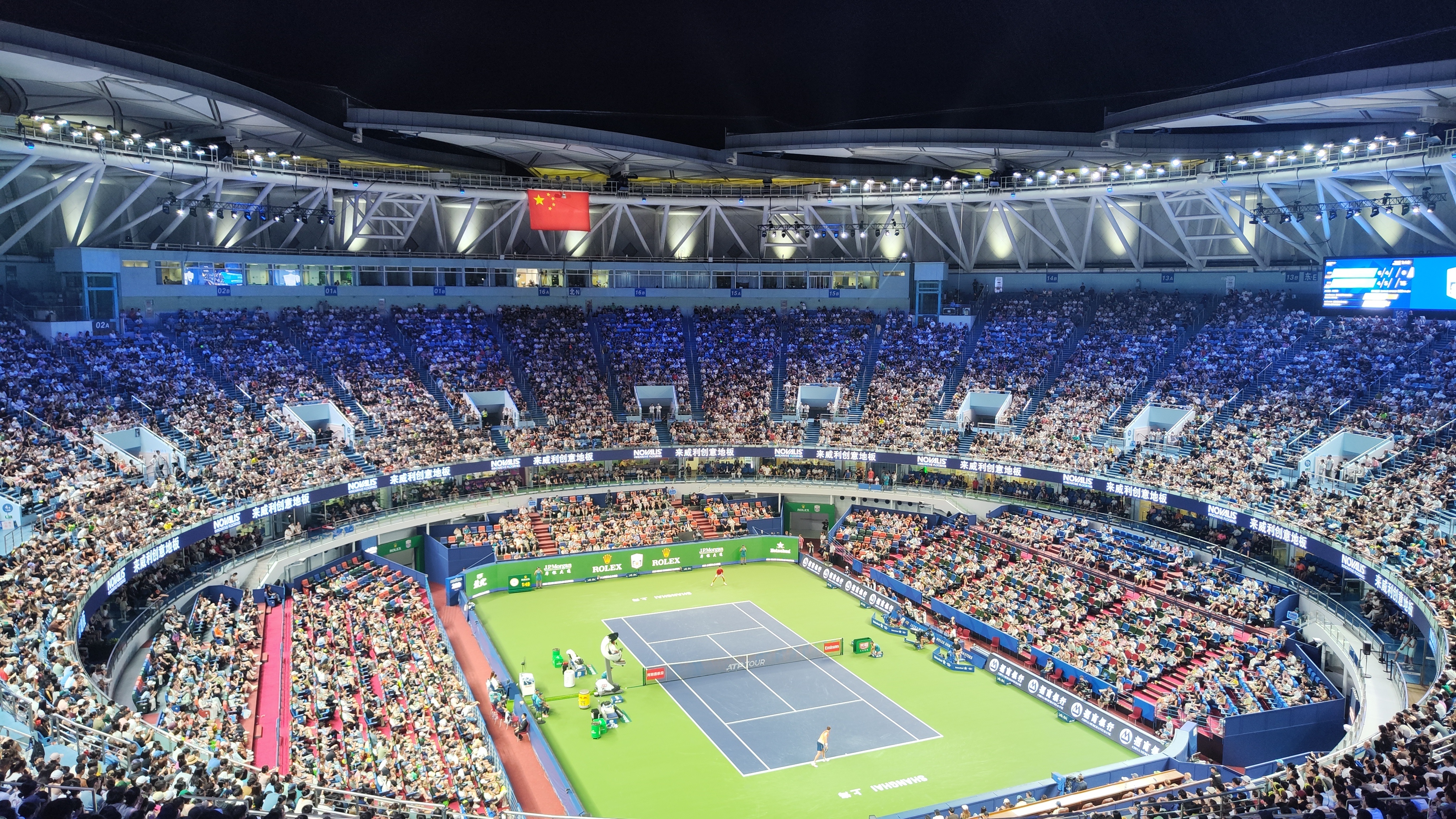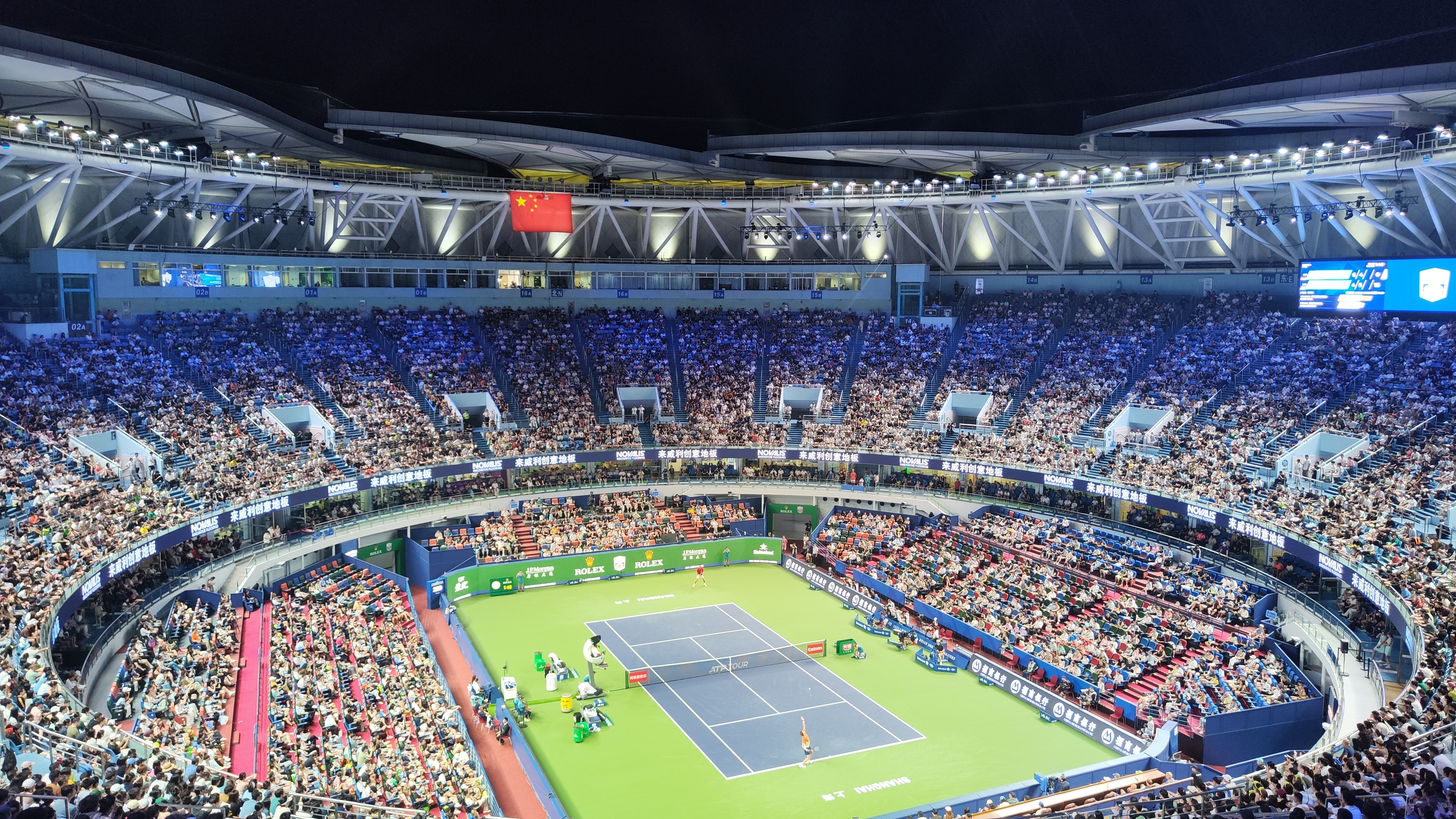 感受下上海几近满座的氛围。辛纳还没登场,另外一个Janick就已经打爆鸡血了,老