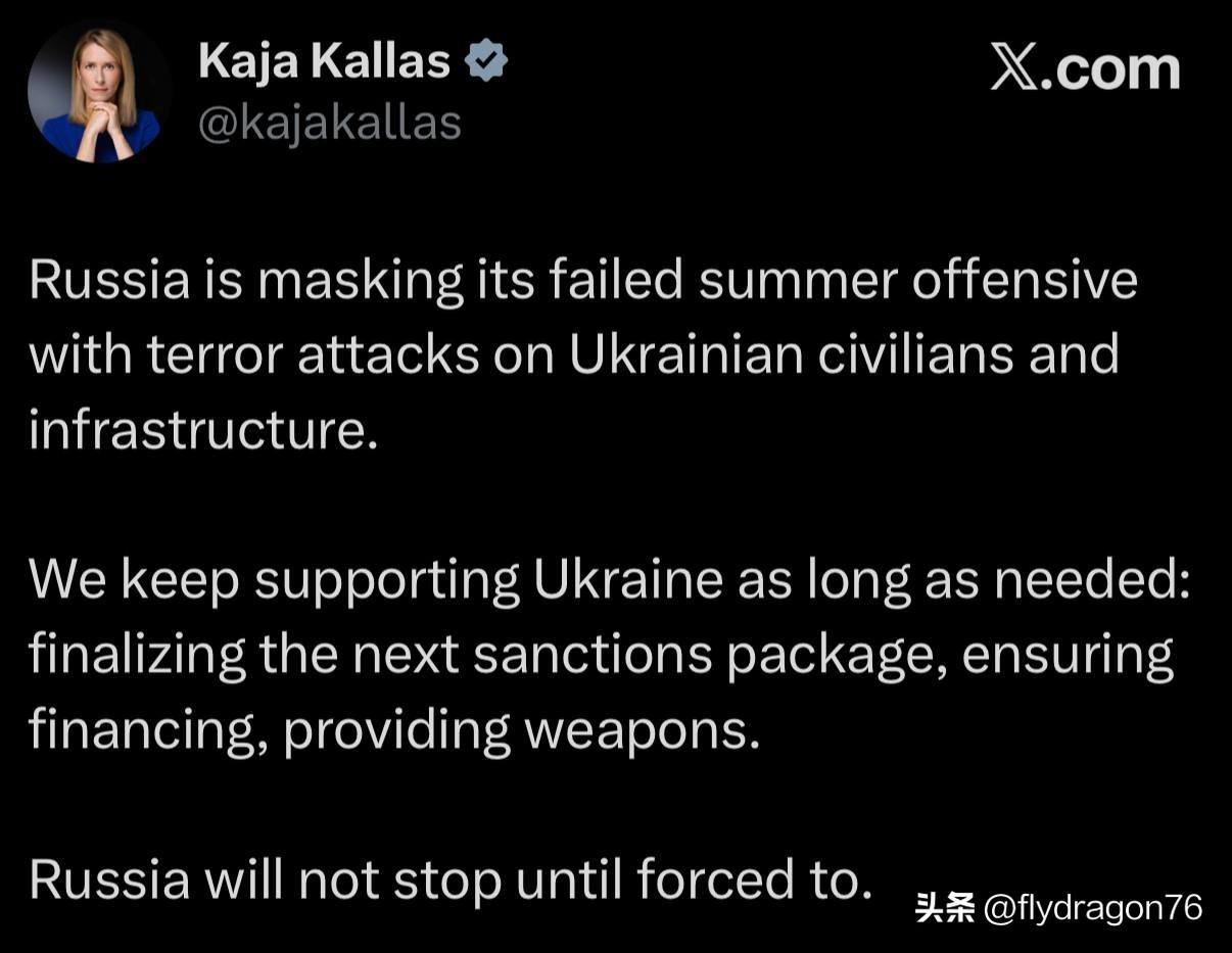 ⚡️🇪🇺🇺🇦🇷🇺欧盟委员会副主席卡拉斯指责俄罗斯袭击民用能源基础设施,以报复其2025年夏季攻势失败。