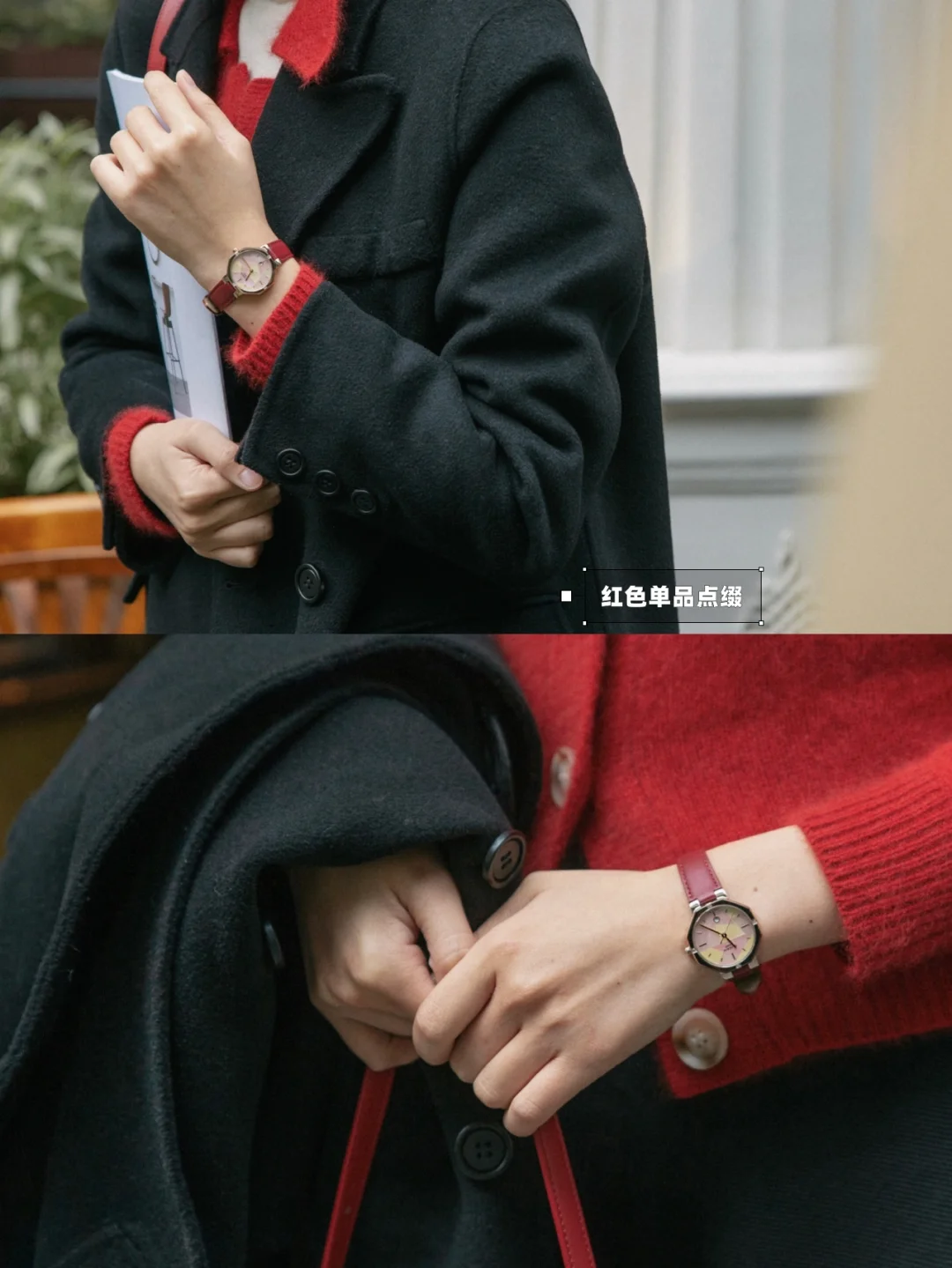 简约的红色表带立马新年的味道就有了,炫彩的贝母表盘多了一丝轻松的时尚感,还不知道新年和七夕礼物送啥的小伙伴,可以直接抄作业啦