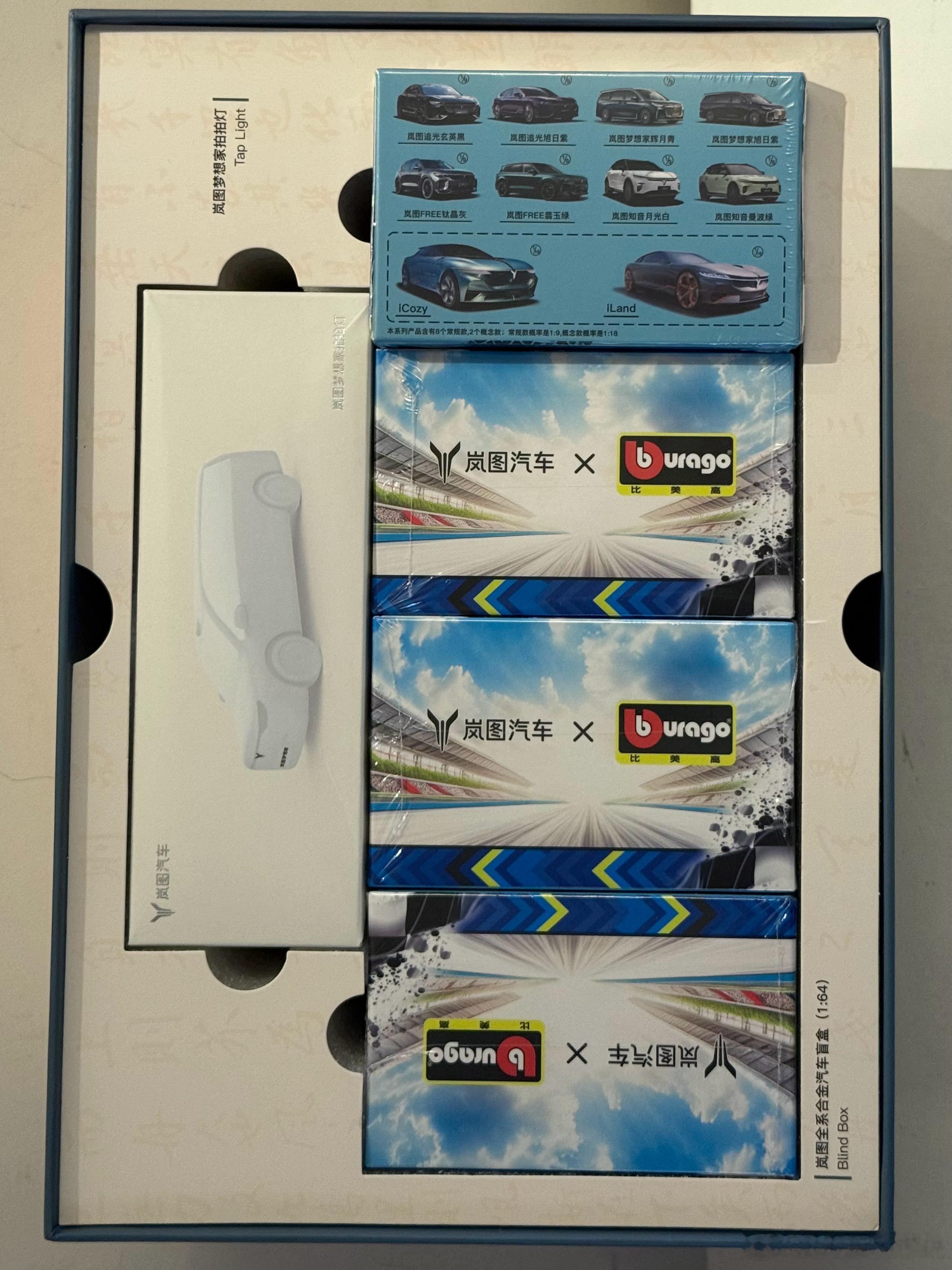 送东风岚图中秋礼盒(四个小车模型盲盒+拍拍灯+微缩景观模型),喜欢的朋友点个赞,