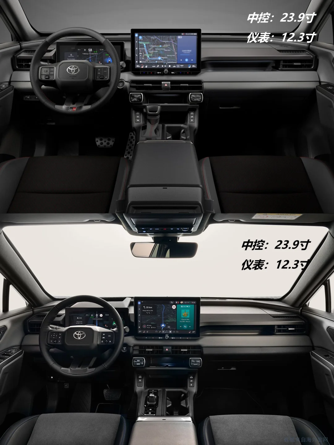 ● GR Sport版:仅提供PHEV搭配全轮驱动,综合输出320马力,动力调校更偏运动,响应更灵敏。