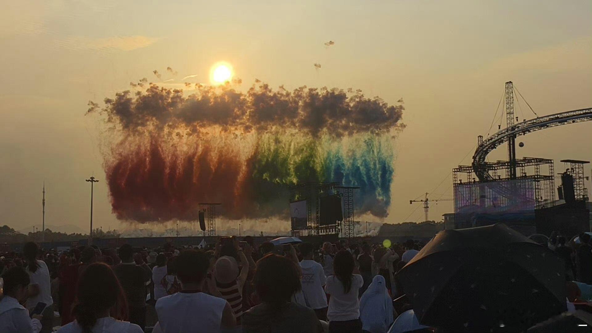 华晨宇 天公作美具像化谁能说这不是天公偏爱!华晨宇南京巡演第二天,彩色白日烟花绽放成龙形,太阳竟恰巧落在龙头成“画龙点睛”之笔,这“天公作美具像化”的一幕,连老天爷都在为舞台添彩!