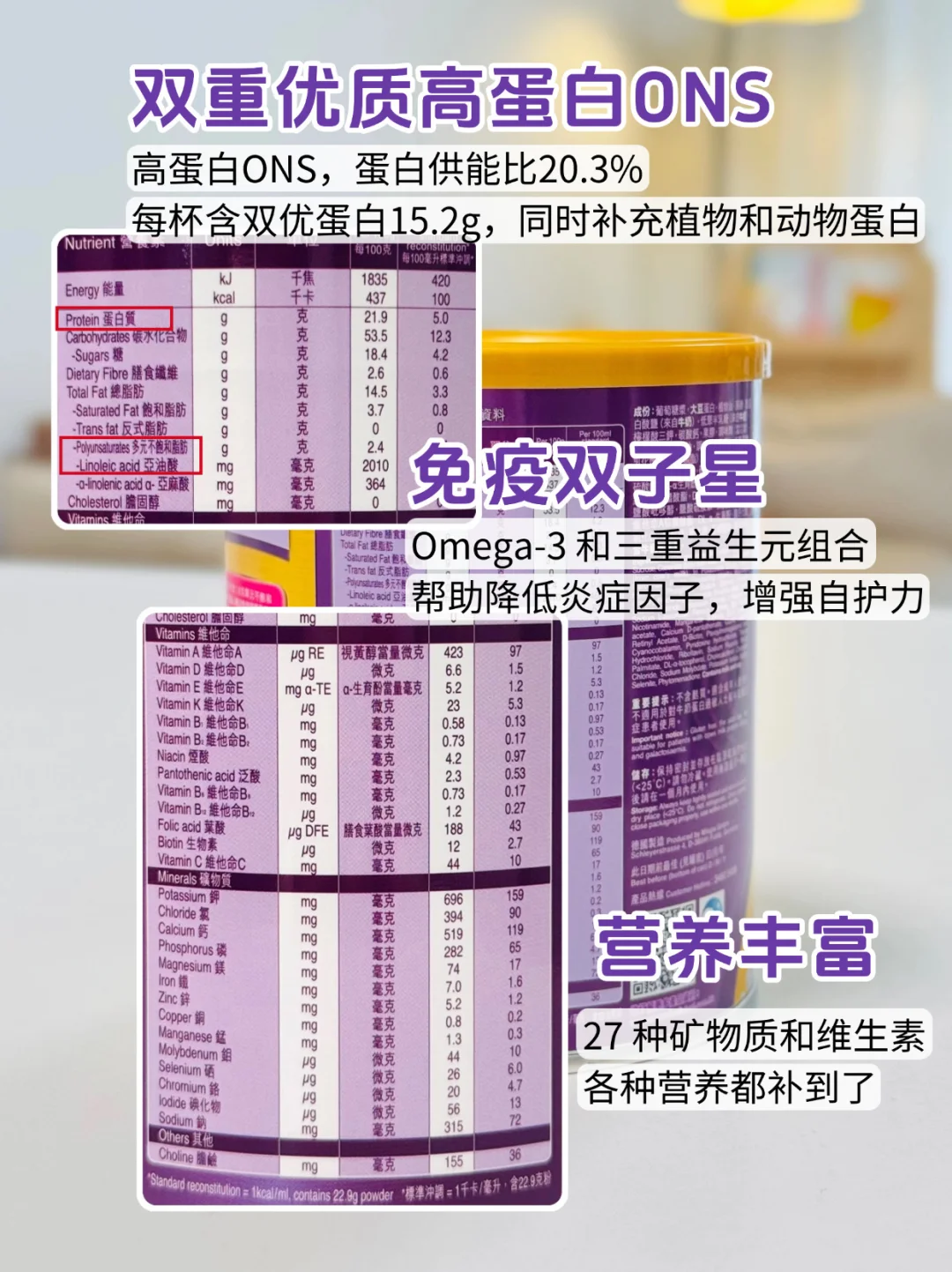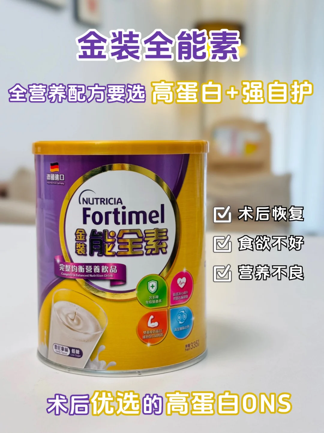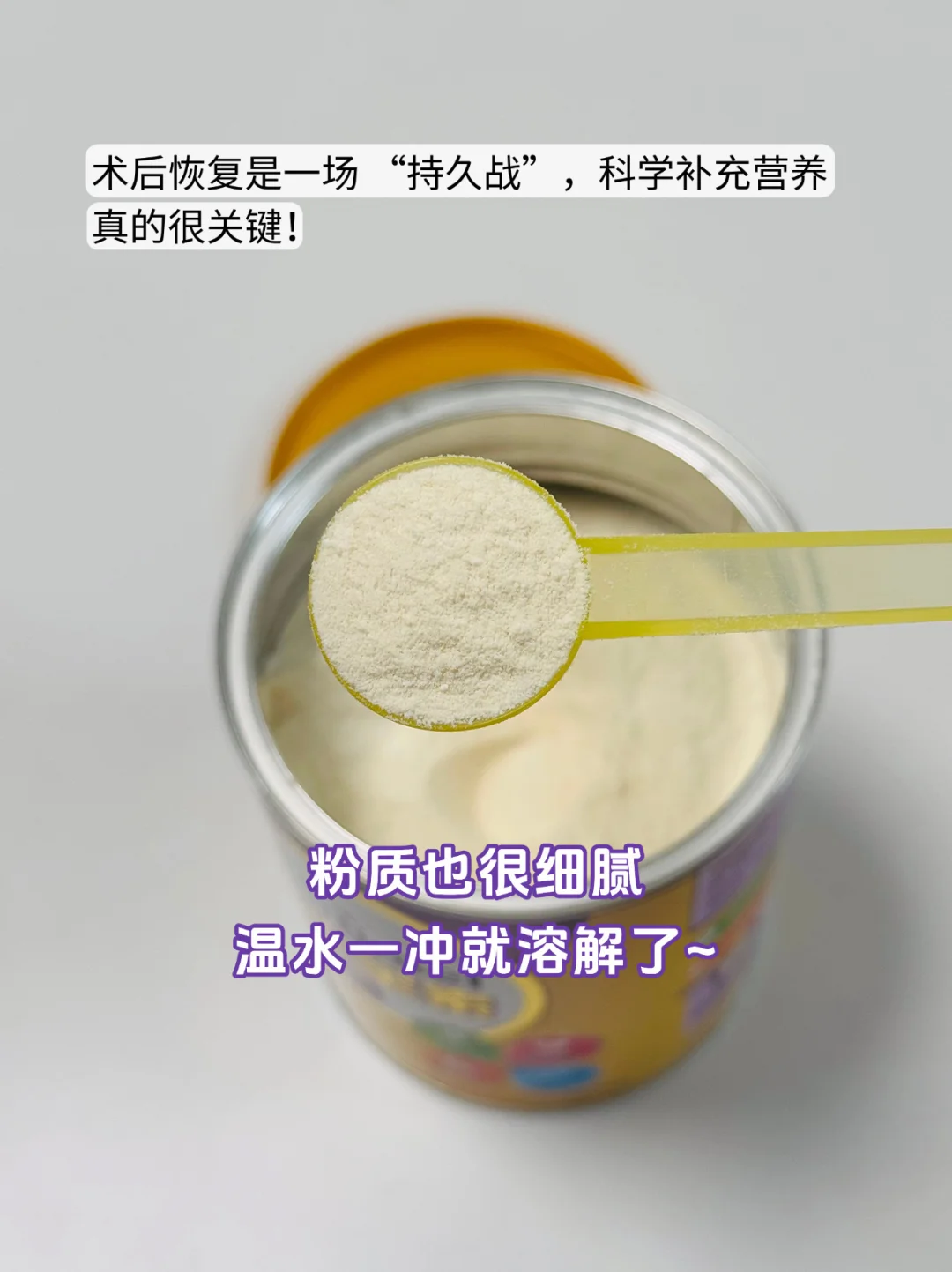 作为一名营养师,见过很多术后朋友因为没有及时补充优质的营养而耽误恢复! 术后身体就像在 “重建房子”,细胞要再生、伤口要长好,得有足量的原材料!饮食和营养补充真的非常关键!(详见图1-5) 流食期单靠汤、粥满足不了身体对营养的需求。有的知道选择营养补剂来补营养,却选择了成分不够优质的营养粉,只能补充基础营养,没办法更好巩固身体恢复。这时候选对一款专业的真正的高蛋白全营养补剂就很重要! 不能只看营养种类多不多,关键看营养是否足够优质,是否适合术后的情况。 ✅要选择真正的优质高蛋白 优质蛋白含人体必需氨基酸且易吸收,能高效修复组织;还要关注蛋白供能比,也就是蛋白质提供的能量占总能量的比例,蛋白供能比太低只会哐哐长肉却不长肌肉。 ✅自护成分要科学搭配,单一成分满足不了术后对自护提升的需求,最好是多种益生元组合搭配,才能起到更理想的自护效果。 ✅口味不要太甜腻,喝两次就抗拒,坚持不下去 ✅耐受要好,好消化不胀气才能更好吸收营养 ✅优先选有医学背书的大品牌,像专业医学品牌纽迪希亚,不少产品都在🏥售卖 之前好多朋友让我推荐合适的,我对比了不少产品,发现符合要求的真不多。有的膳食纤维太高,术后一喝就拉肚子;有的齁甜,喝一次就说再也不喝了;还有的蛋白供能比太低,补了≈没补。直到后来发现金装能全素,才觉得终于找对了! 金装能全素是市面上全营养补剂中头一个蛋白供能比达到20.3%的,能高效补充蛋白能量!而且它的蛋白质含量很高,每杯含双优蛋白15.2g,能同时补充植物和动物蛋白,是一款真正的高蛋白口服营养补剂 还添加了免疫双子星Omega-3 和三重益生元组合,帮助降低炎症因子,减少术后不良并发症,同时提升自护力,增强体质助恢复 这样高蛋白+强自护组合才是更适合术后的全营养补剂~ 味道是清淡的,不会甜腻,冲调也方便,每天喝很容易坚持。 还有27种矿物质和维生素,各种营养都补到了,膳食纤维含量也科学,能帮着肠道更好吸收营养~ 而且金装能全素就是百年医学品牌纽迪希亚旗下的,还获得过香港医护信心之选大奖,给家人喝着也更安心。 除了吃对营养,保持积极心态也很重要!术后恢复是一场 “持久战”,科学补充营养才能事半功倍~