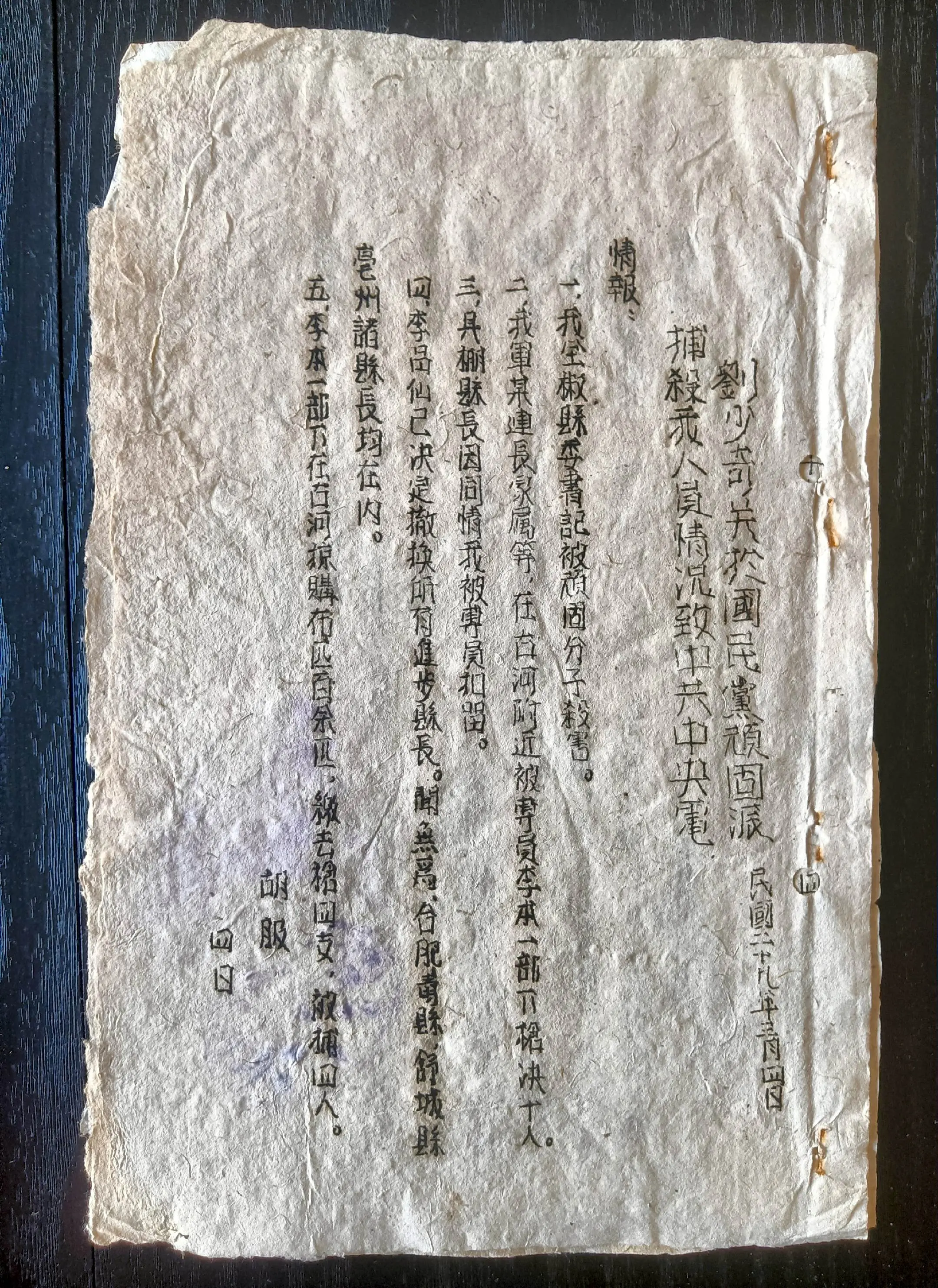 抗战时期新四军电报稿(之三十六)《刘少奇关于国民党顽固派捕杀我人员致...