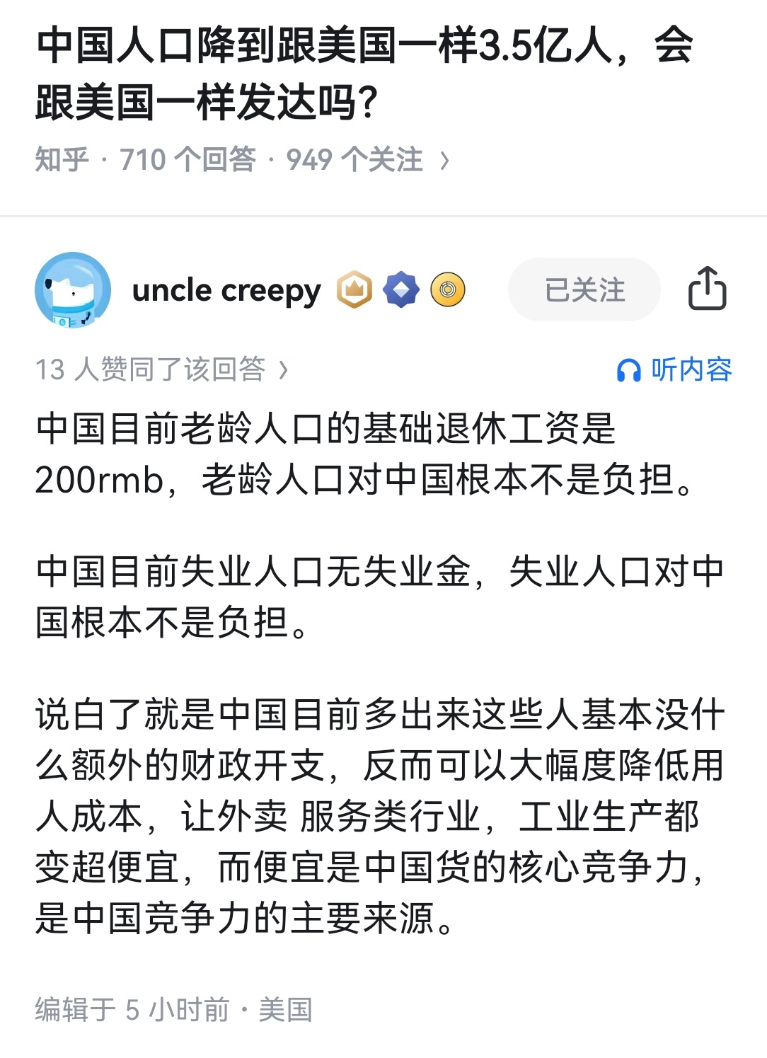 中国人口降到跟美国一样3.5亿人,会跟美国一样发达吗?