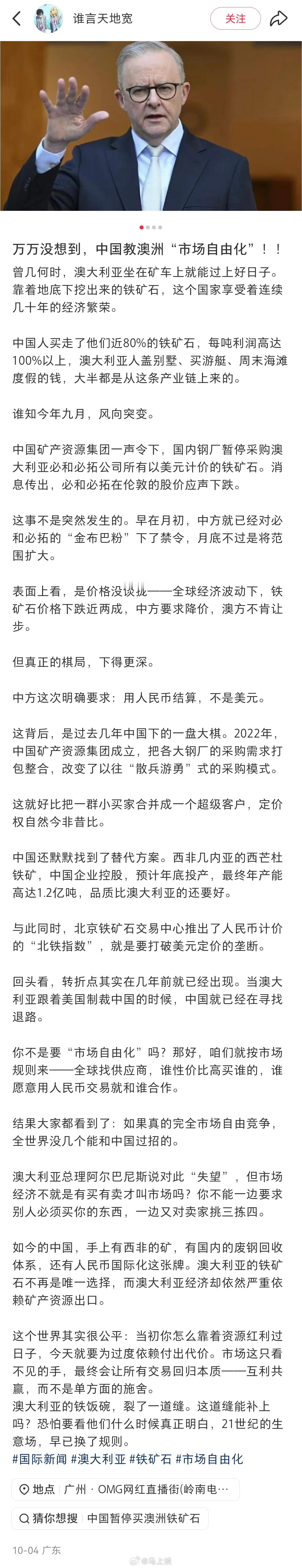 如果这次铁矿石澳大利亚和中国谈不妥,澳洲的好日子真的到头了~
