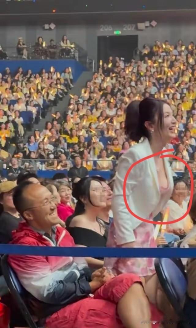 张萌说自己长记性了,穿了一个内搭[捂脸][捂脸] 事情的起因是因为刘宇宁演唱会,她成了最大的显眼包,和丈夫一起坐在观众席,又扭又喊又跳,低胸内衣低到离谱,被全网群嘲。 话说中年女性,又是公司的大老板,制片人,穿衣服能不能稳重一点? 起码也应该注意一下场合吧。 又不是晚宴红毯的,真没必要这么夸张[捂脸][捂脸]张萌
