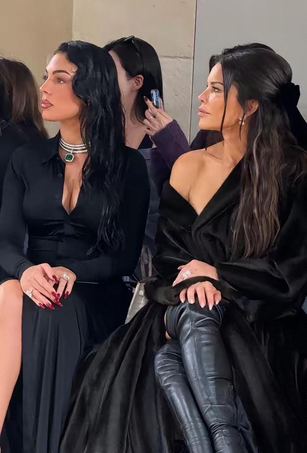 巴黎时装周上,贝索斯女友劳伦·桑切斯与C罗未婚妻乔治娜同框看秀,双双以一身黑色性感造型亮相。 56岁的桑切斯身着露肩皮草,31岁的乔治娜则穿深V高开叉裙,两人虽相差20多岁,但风采同样耀眼,难分高下。
