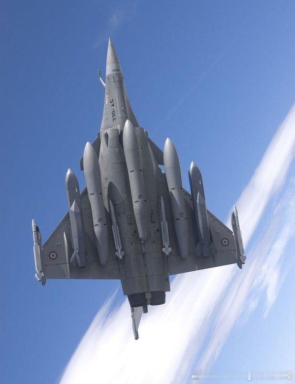 5月7日印巴空战中,印度空军阵风战斗机的挂载:3个副油箱、2枚SCALP EG巡航导弹、2枚MICA RF和2枚MICA IR,流星在弹药库中吃灰。