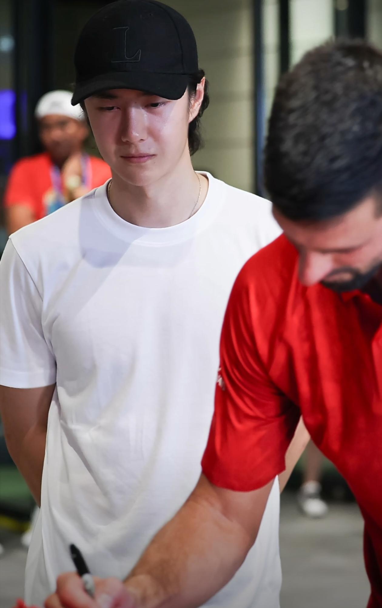 【#王一博德约拥抱#】#德约签名王一博嘻嘻#@UNIQ-王一博现身@上海劳力