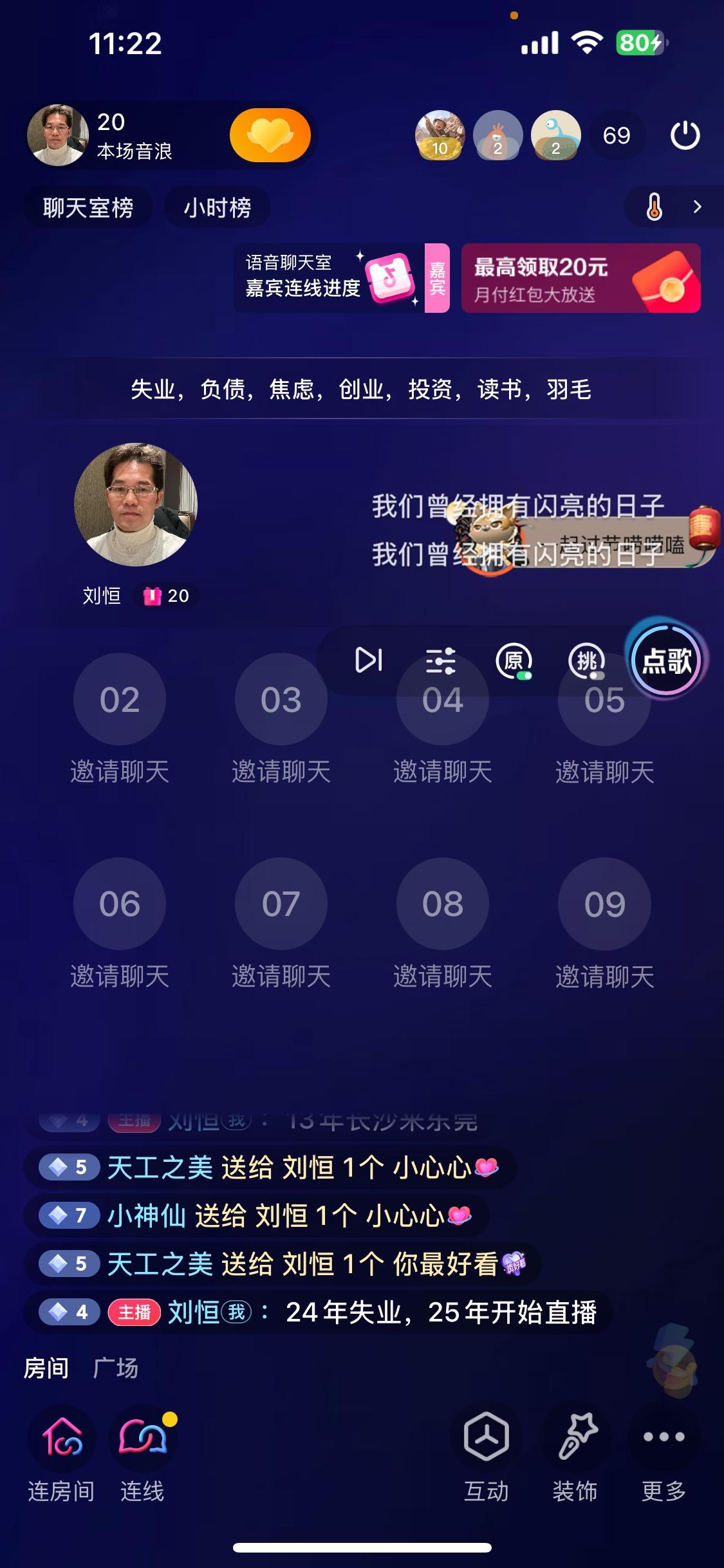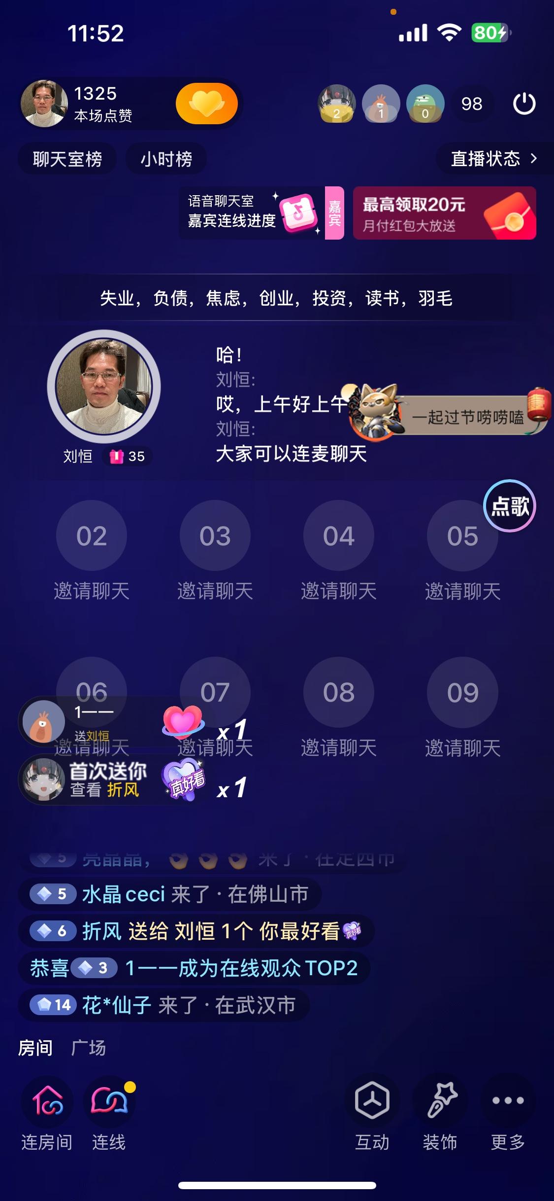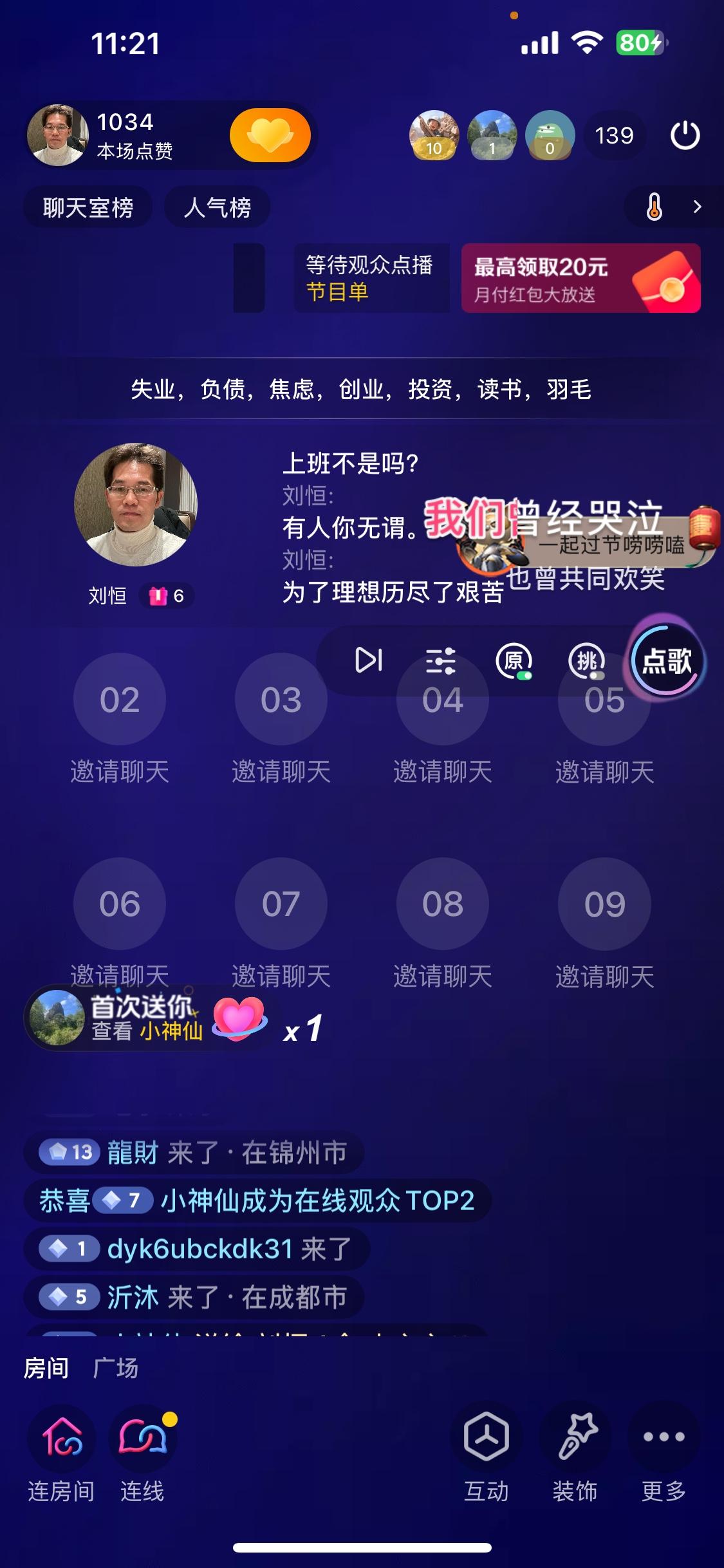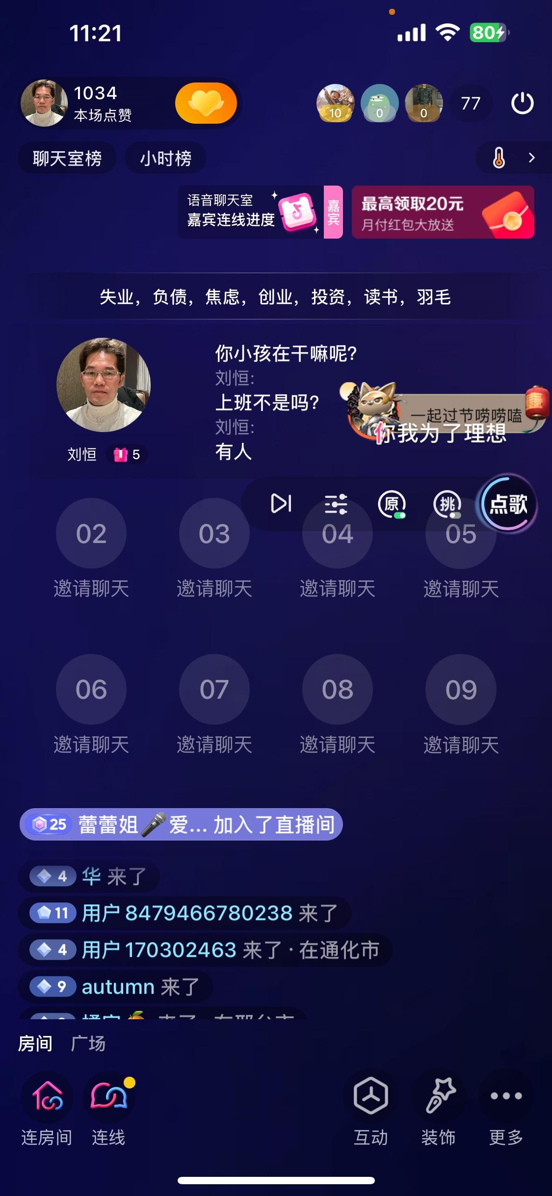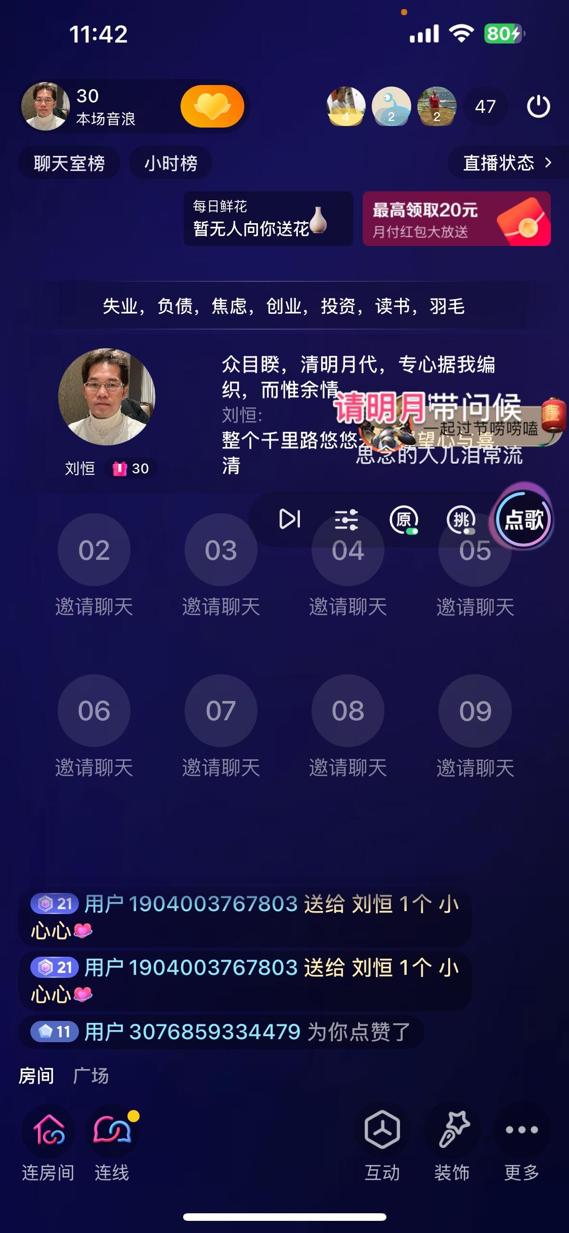 认真搞直播的第十二天,中秋节上午醒来,就开始直播了,直播间人数也不稳定,很多时候