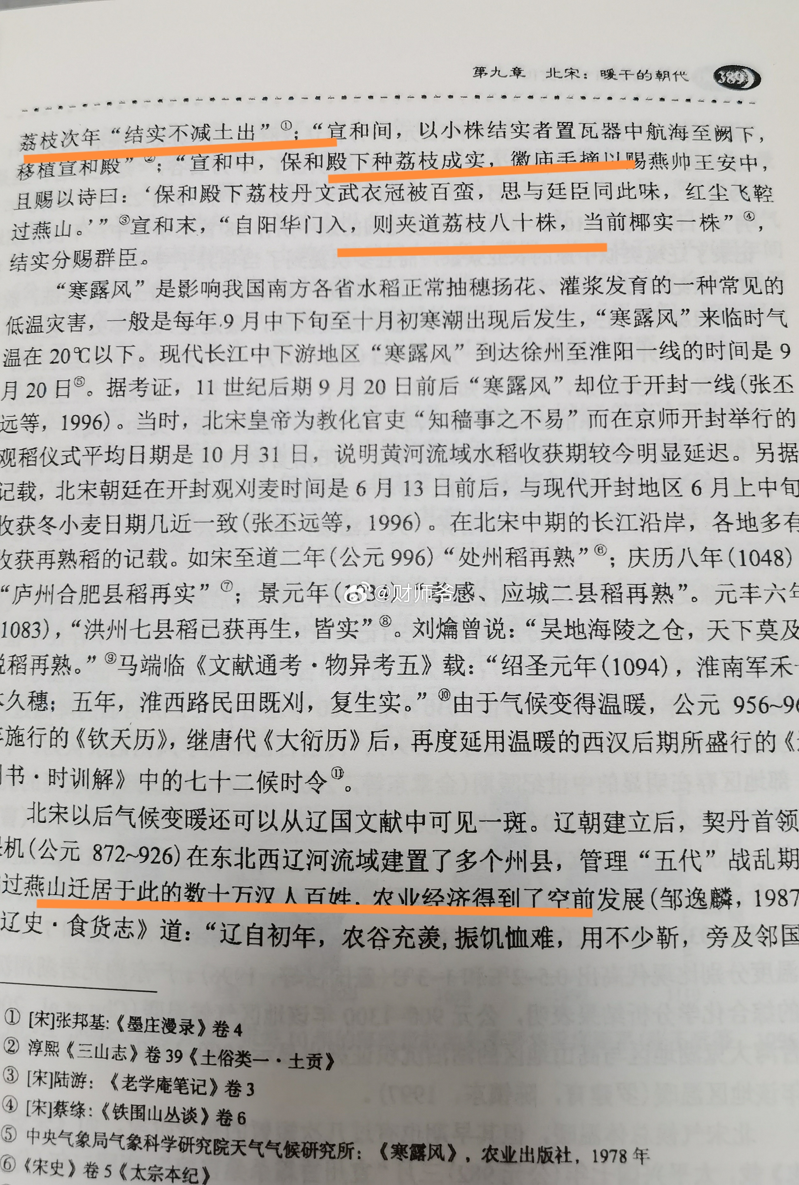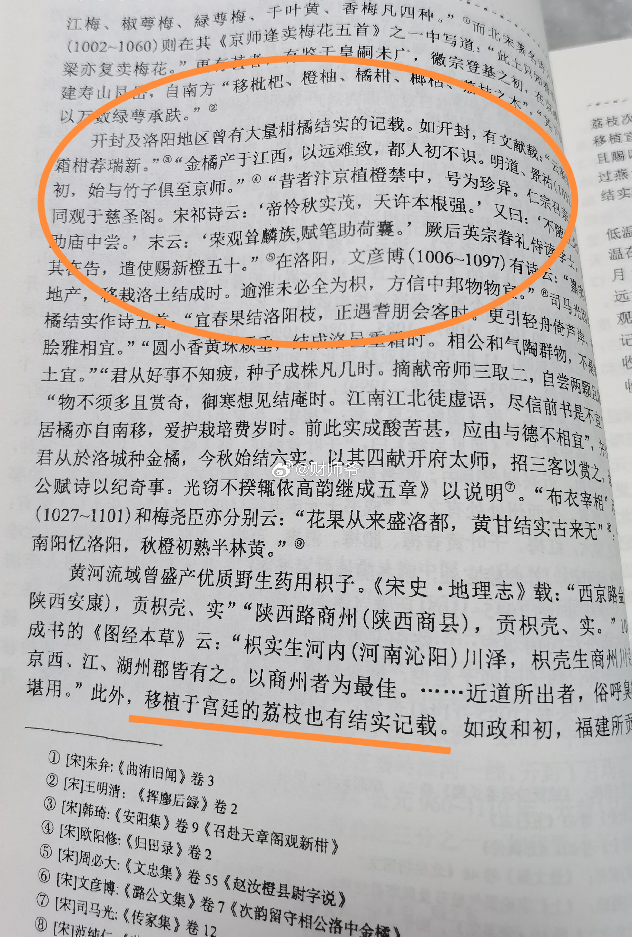 看到没有?北宋年间河南一带,不但能种柑橘,还可以种植荔枝,可结实。[微风]