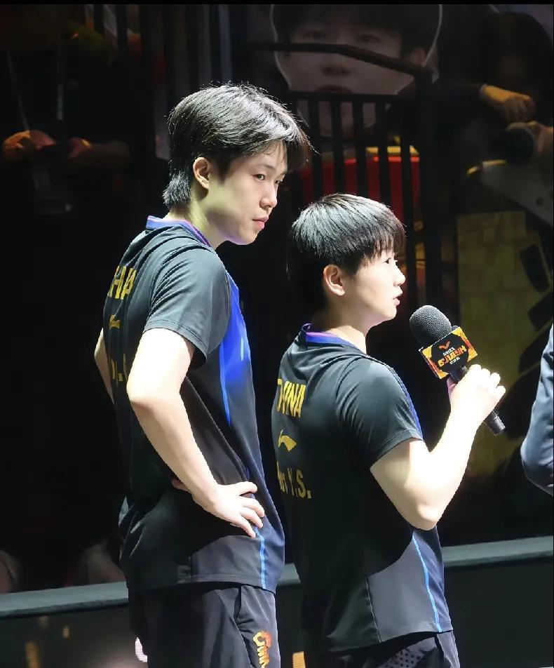 这个眼神, 是搭档之间的惺惺相惜, 还是青梅竹马之间的心有灵犀, 还是一些特别的情感呢? 这是在楚钦一天连轴三场比赛,男单,混双,男双,三场高压力之下的比赛,整个人都疲惫不堪! 混双赢了之后,这次莎莎主动发言,她知道楚钦这时候多么的累,言语中都是对楚钦的夸奖,称赞,还不断的鼓励楚钦,把能赢下这场比赛的功劳都给楚钦! 楚钦也是在莎莎的一顿夸奖中,终于露出来笑容!还时不时偷看莎莎几眼! 心想:怎么会有这么好的搭档,怎么怎么会有这么好的女孩……