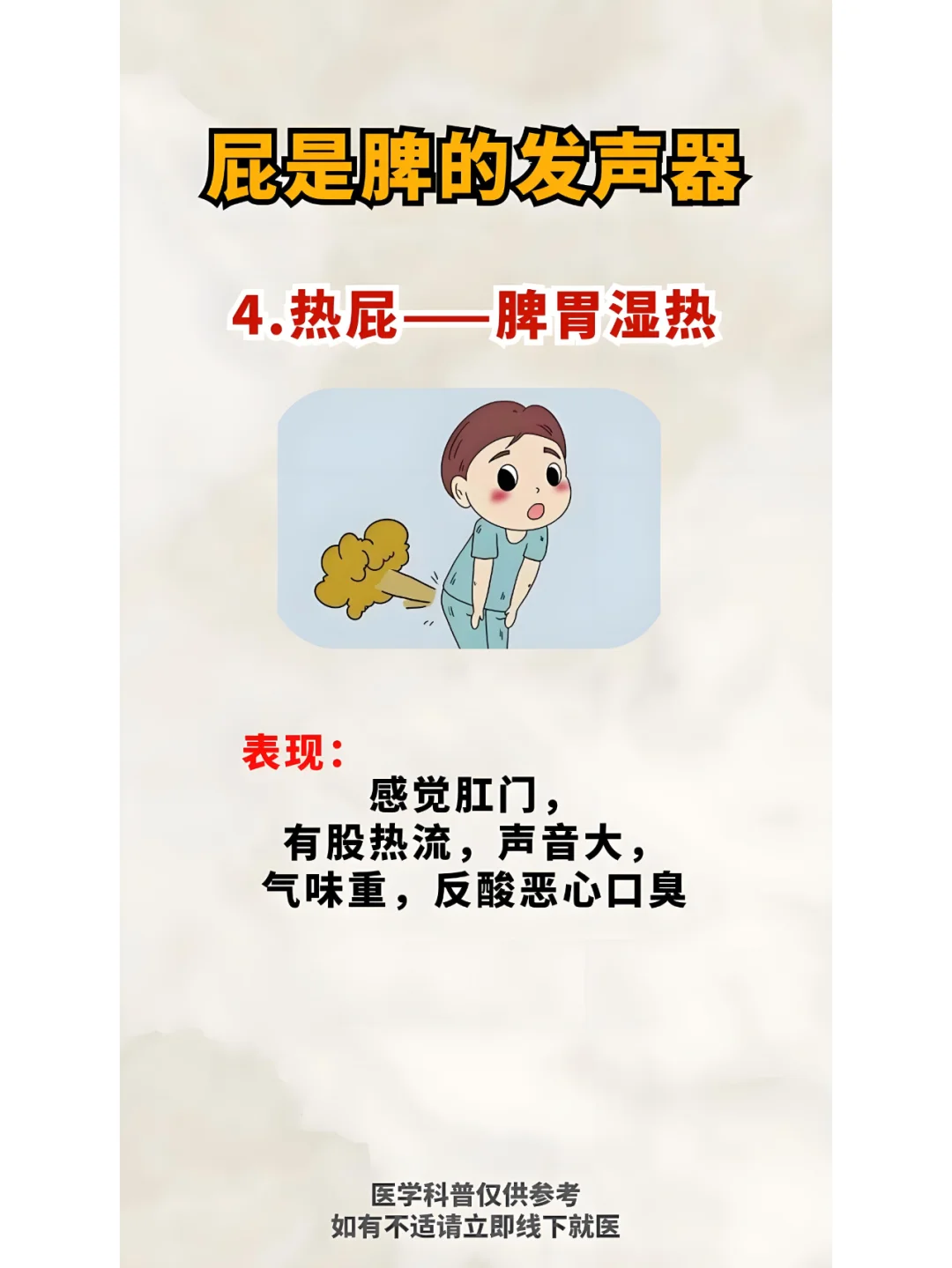 表现:感觉肛门有股热流,声音大,气味重,反酸恶性,口臭。