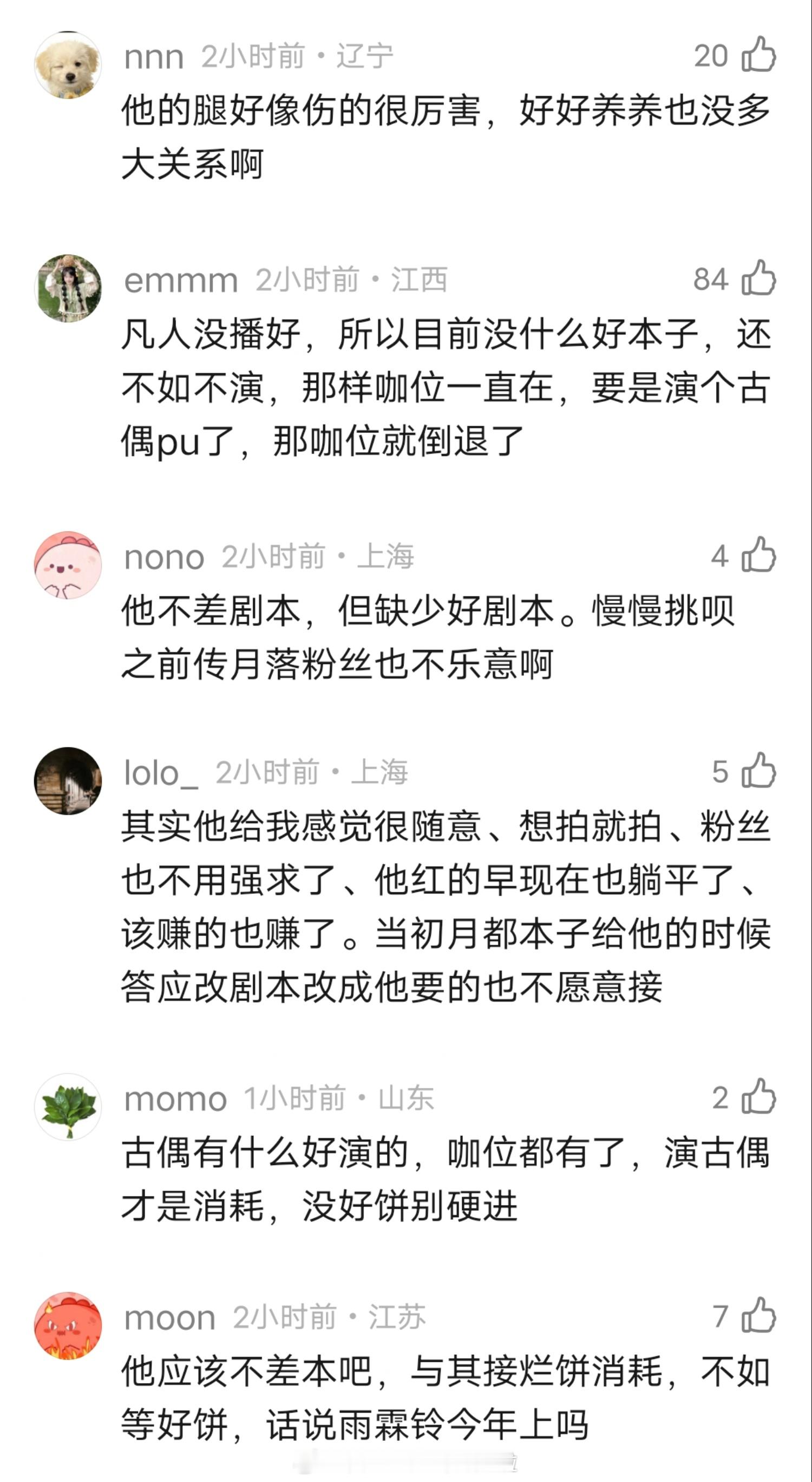 瓜主爆料杨洋目前什么项目也没定,不出意外今年不进组了。雨霖铃今年2月中旬杀青,那差不多要休息10个月。